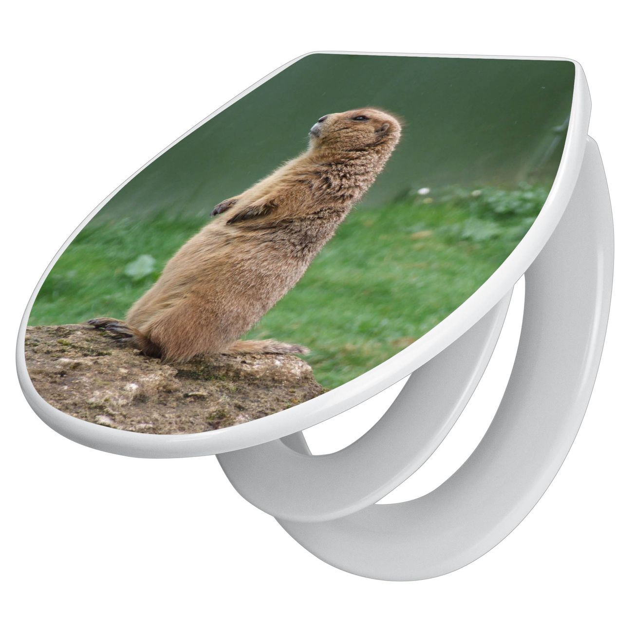 Toilettendeckel weiß mit Absenkautomatik Motiv Biber