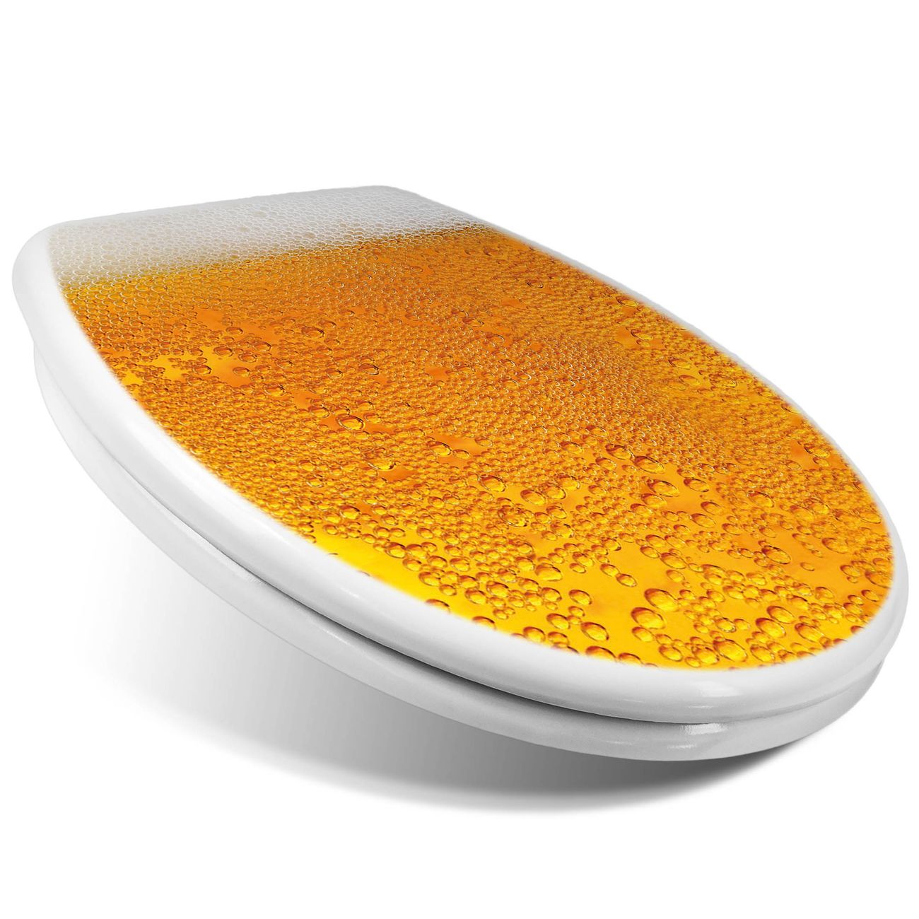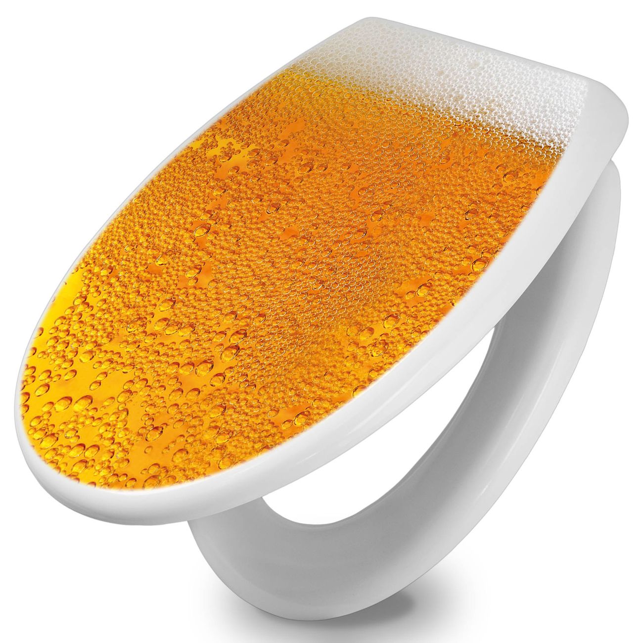 Toilettendeckel weiß mit Absenkautomatik Motiv Bier