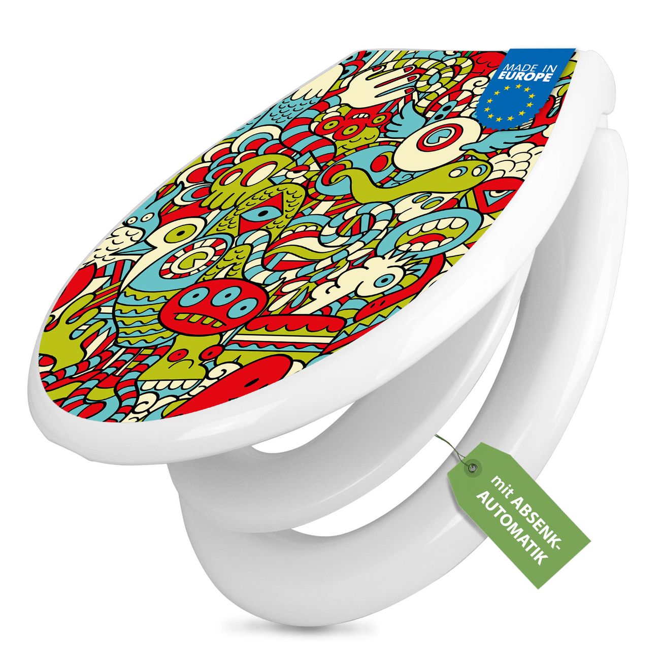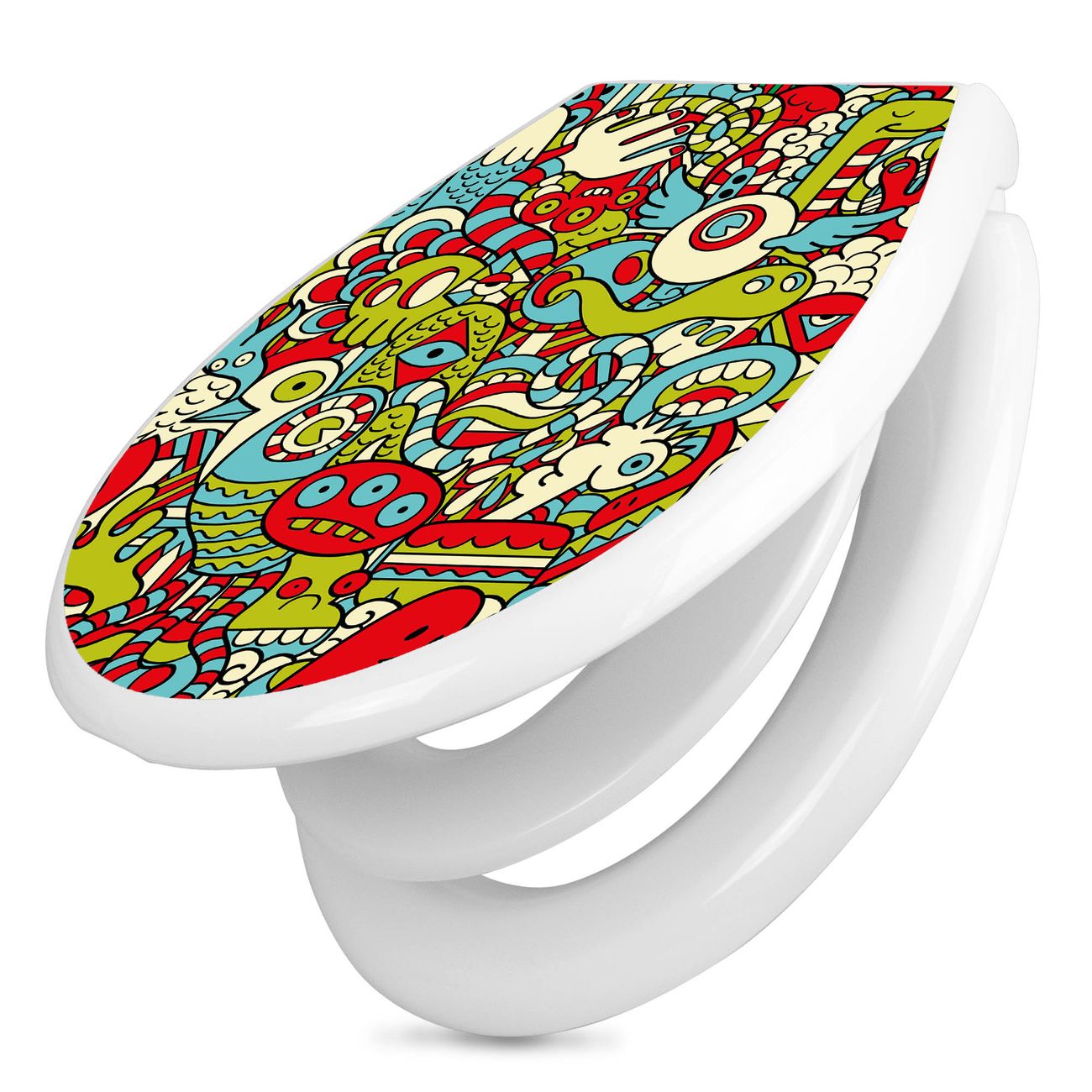 Toilettendeckel weiß mit Absenkautomatik Motiv Birds Worms Freaks
