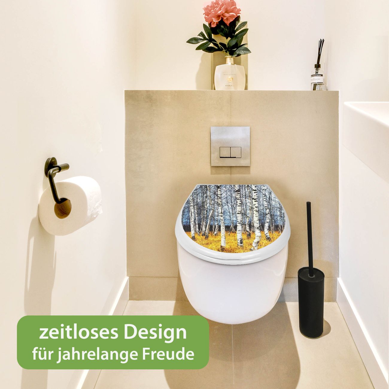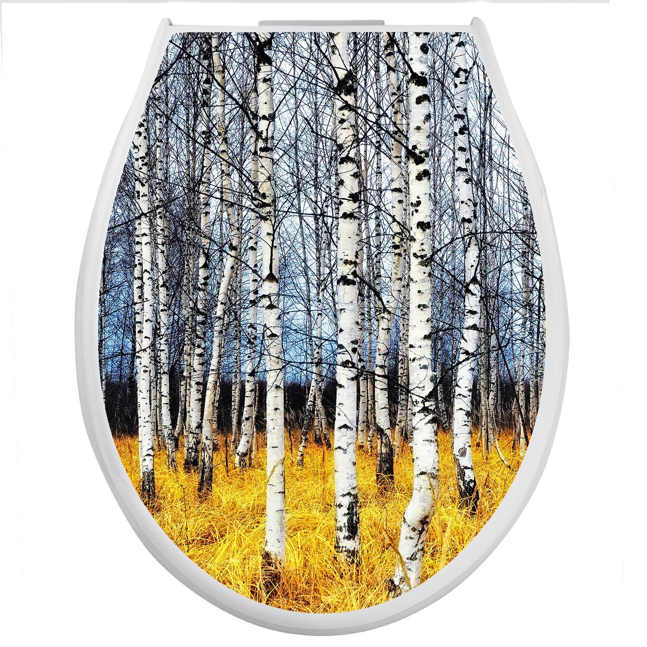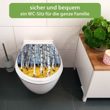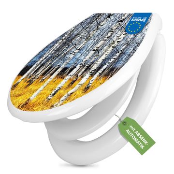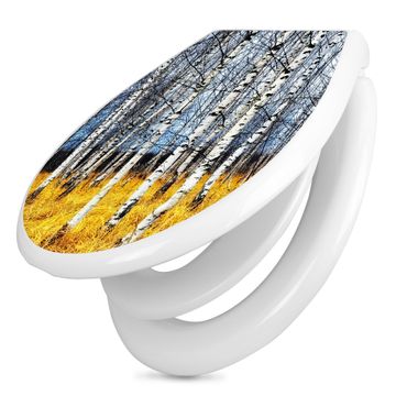 Toilettendeckel weiß mit Absenkautomatik Motiv Birkenhain