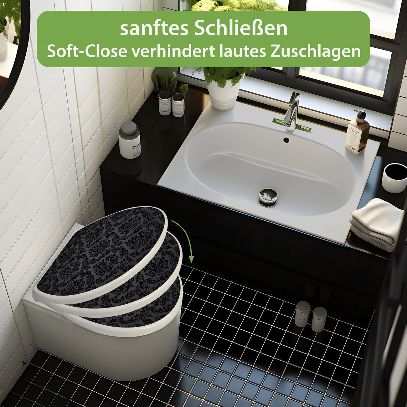 Toilettendeckel weiß mit Absenkautomatik Motiv Black Deluxe