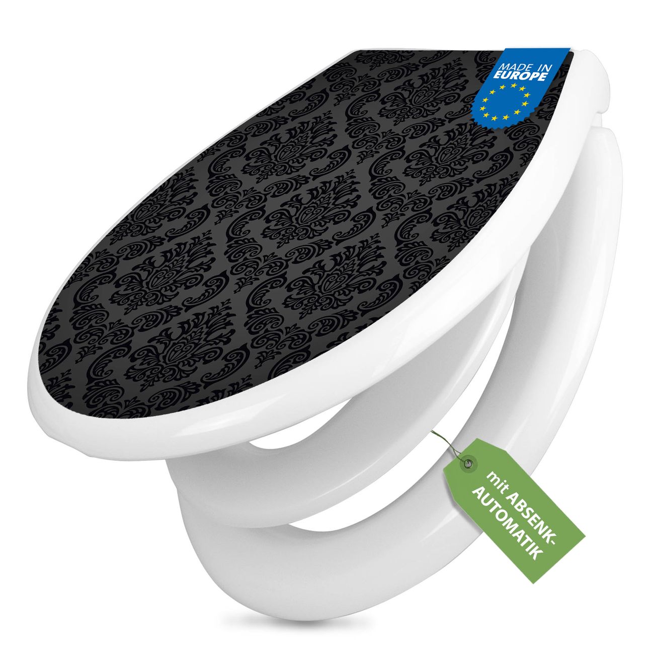 Toilettendeckel weiß mit Absenkautomatik Motiv Black Deluxe