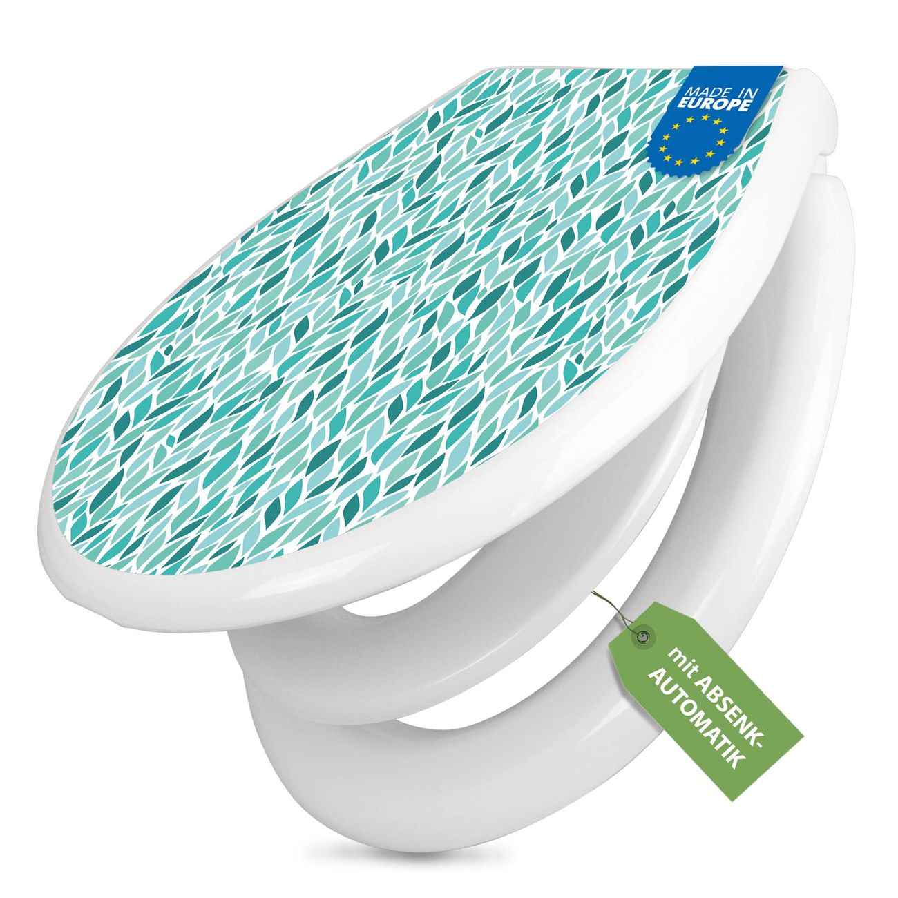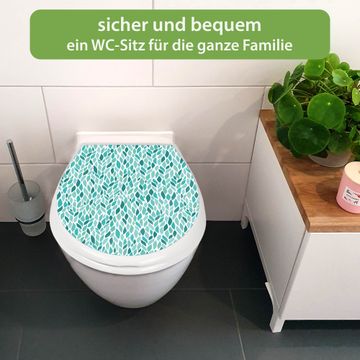 Toilettendeckel weiß mit Absenkautomatik Motiv Blätter Mint
