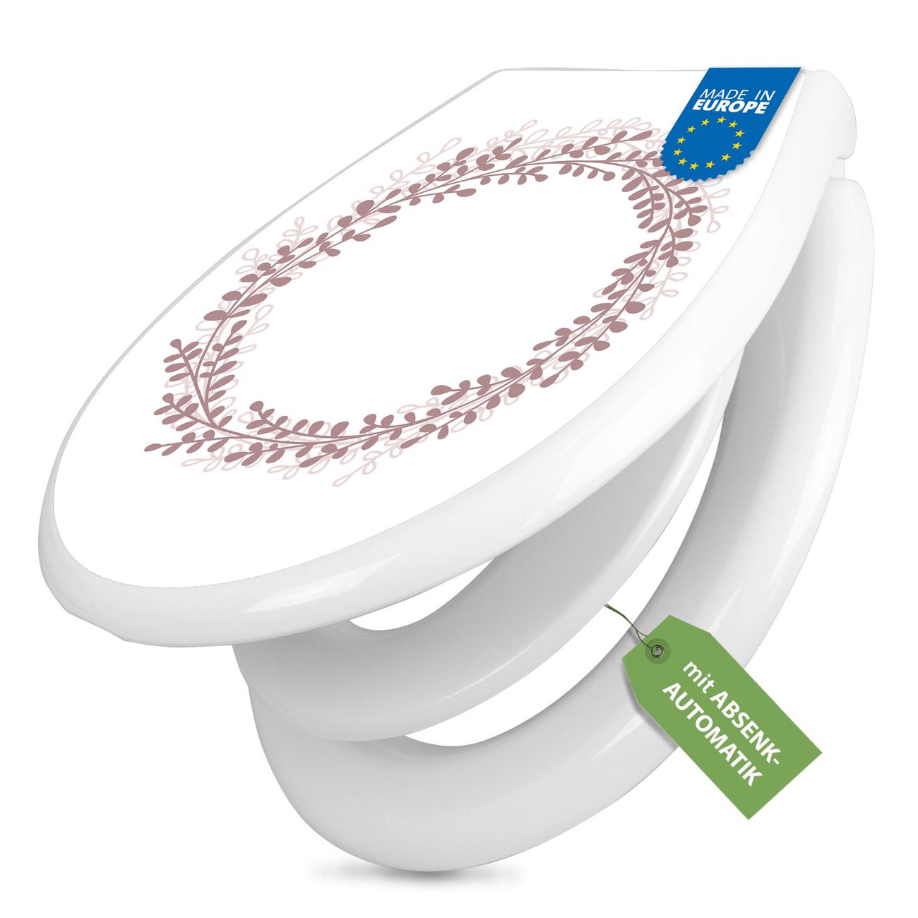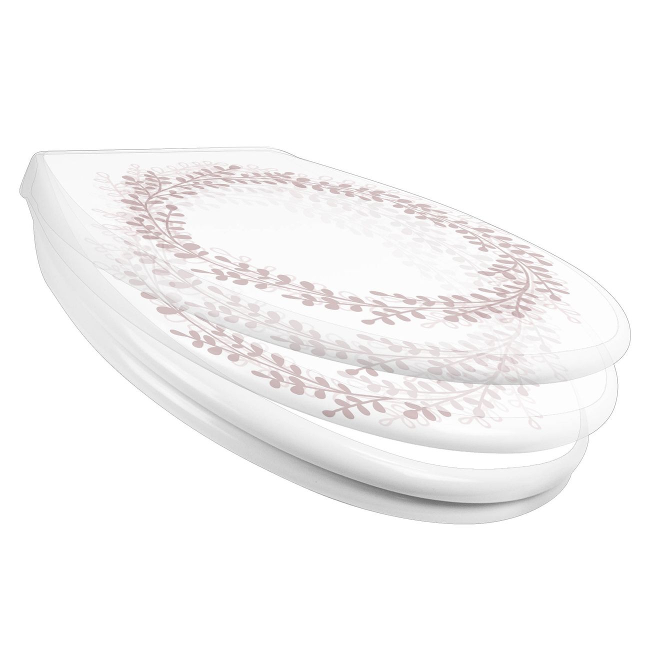 Toilettendeckel weiß mit Absenkautomatik Motiv Blätterkranz