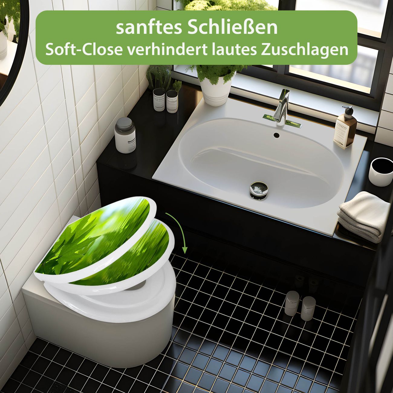 Toilettendeckel weiß mit Absenkautomatik Motiv Blättertraum