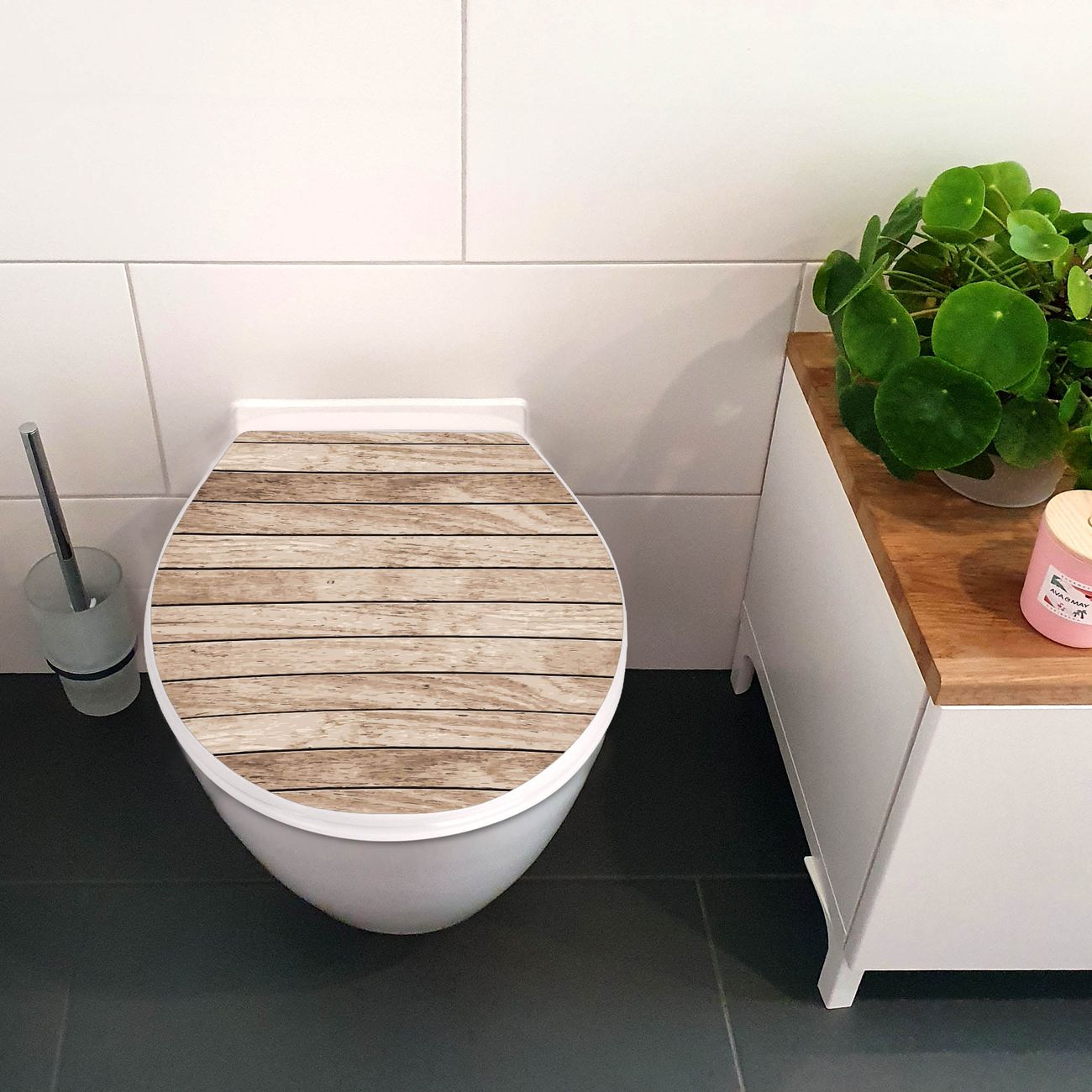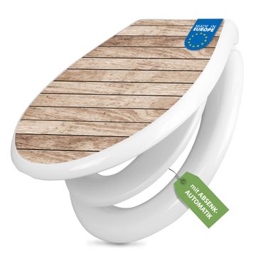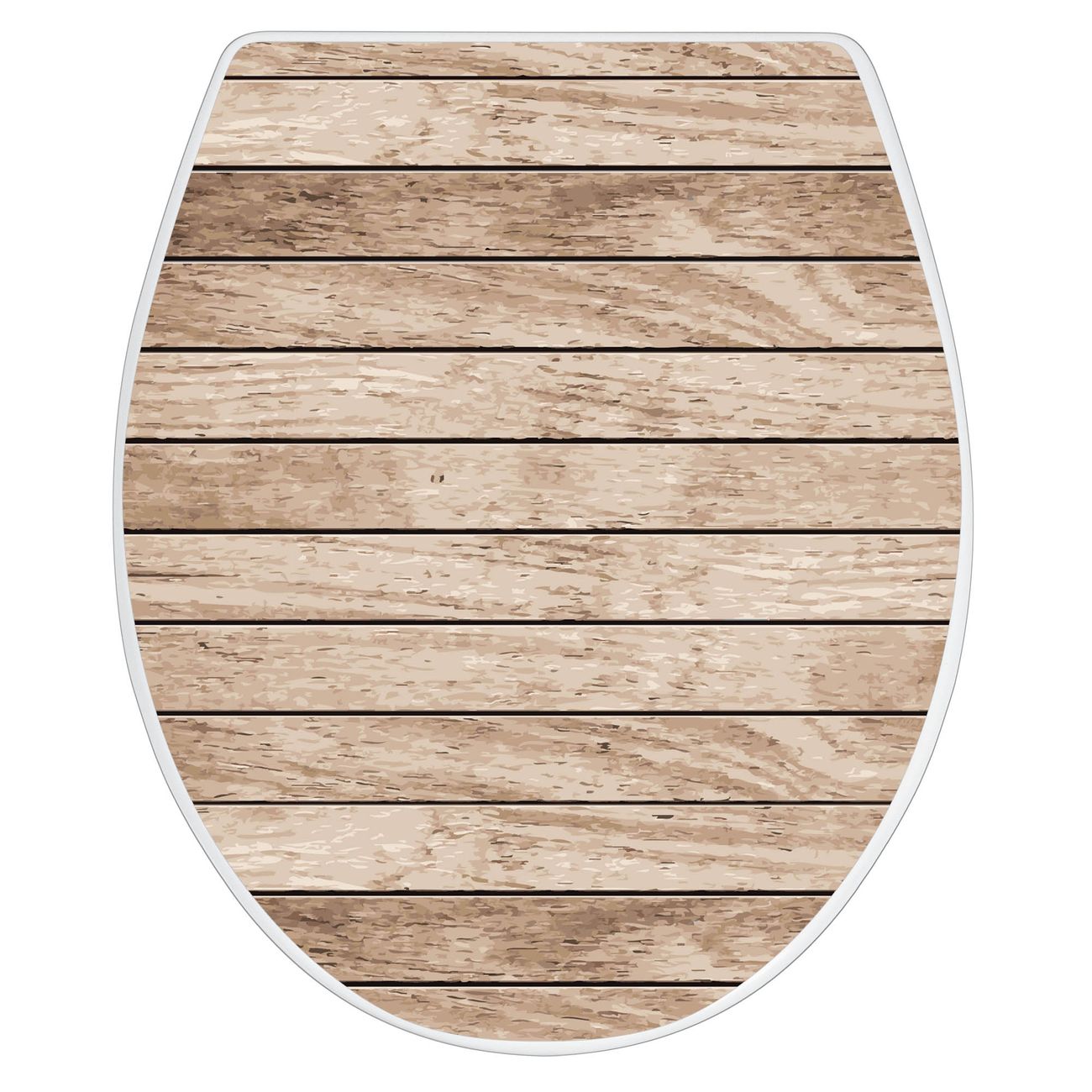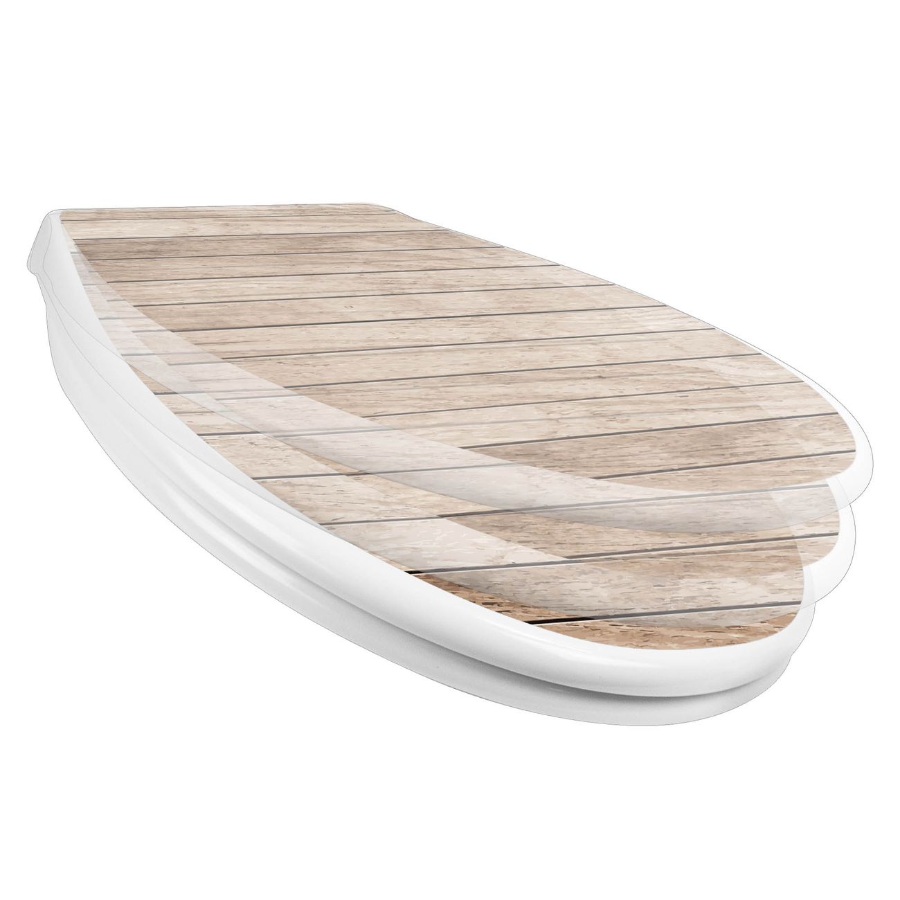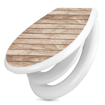Toilettendeckel weiß mit Absenkautomatik Motiv Blasse Holzlatten