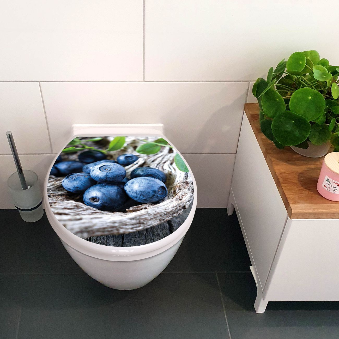 Toilettendeckel weiß mit Absenkautomatik Motiv Blaubeeren