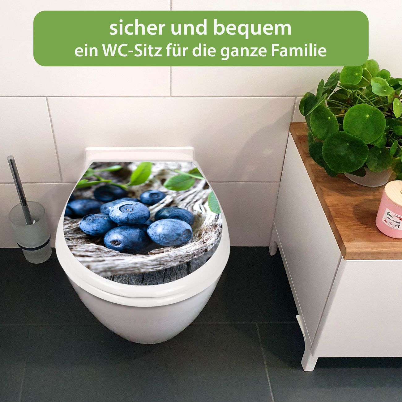 Toilettendeckel weiß mit Absenkautomatik Motiv Blaubeeren