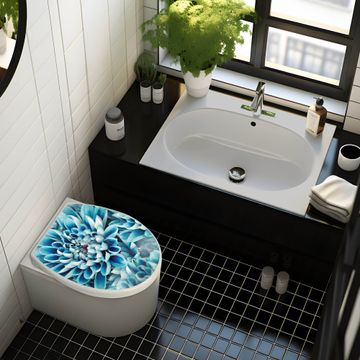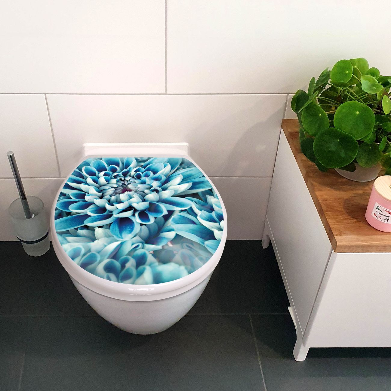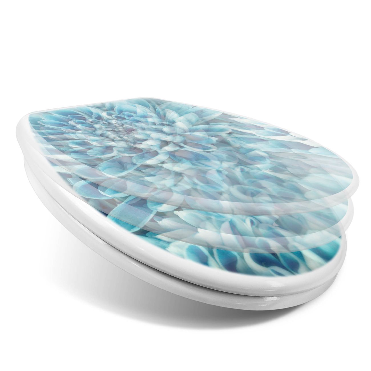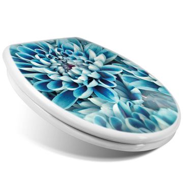 Toilettendeckel weiß mit Absenkautomatik Motiv Blaue Blüten