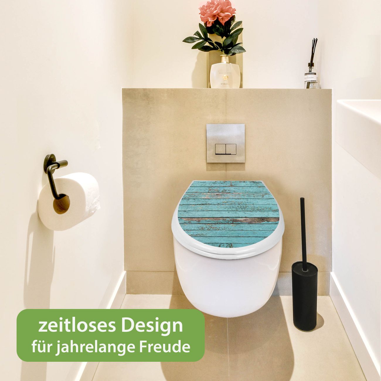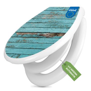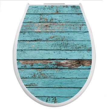 Toilettendeckel weiß mit Absenkautomatik Motiv Blaue Holzlatten