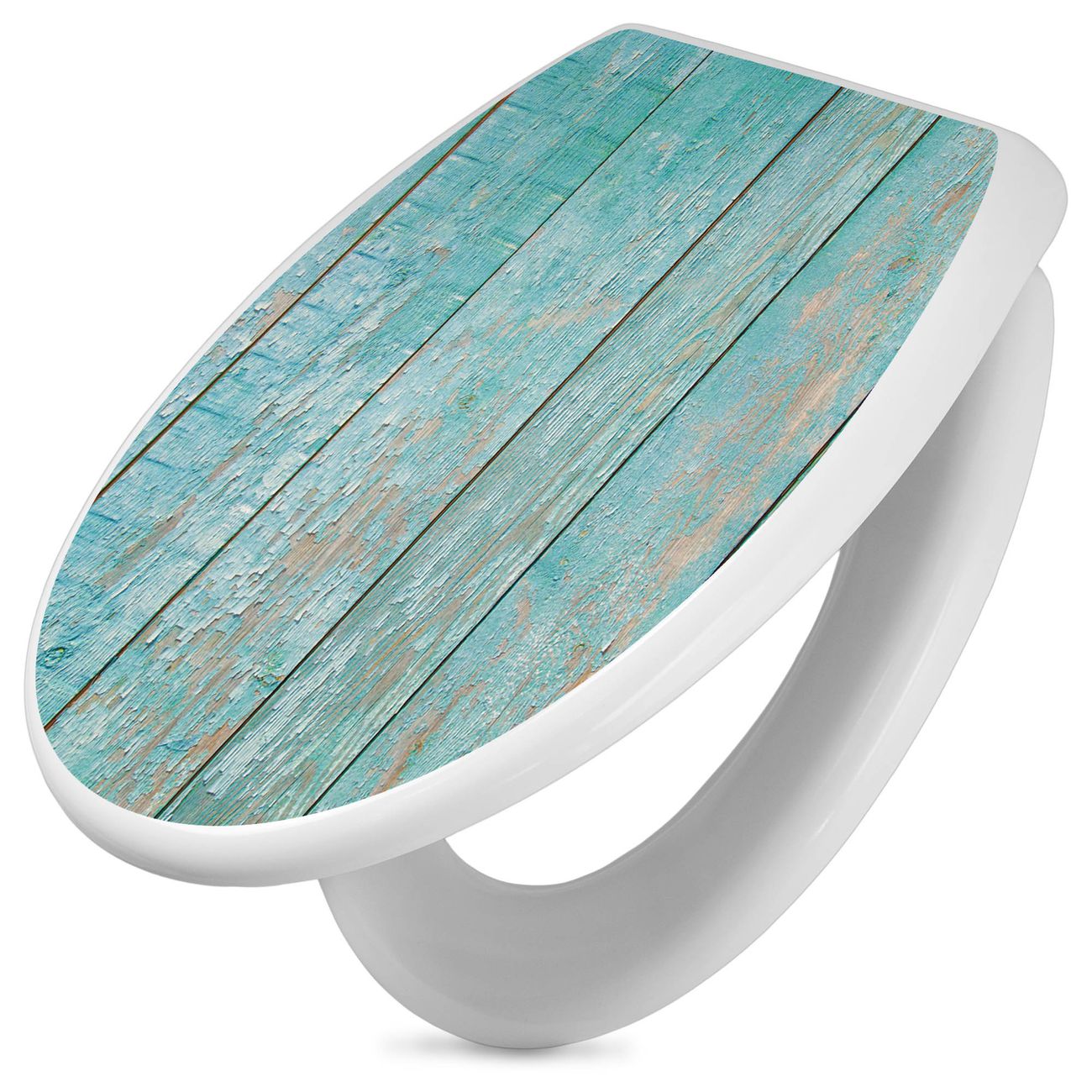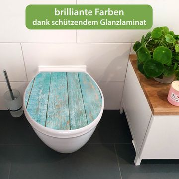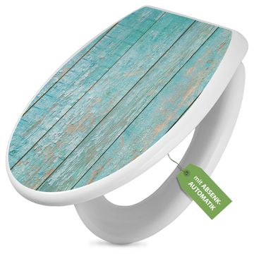 Toilettendeckel weiß mit Absenkautomatik Motiv Blaue Planken