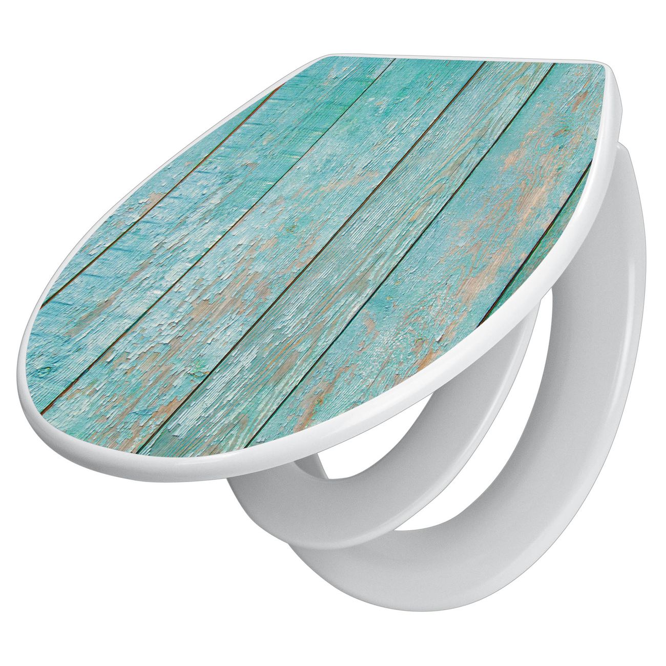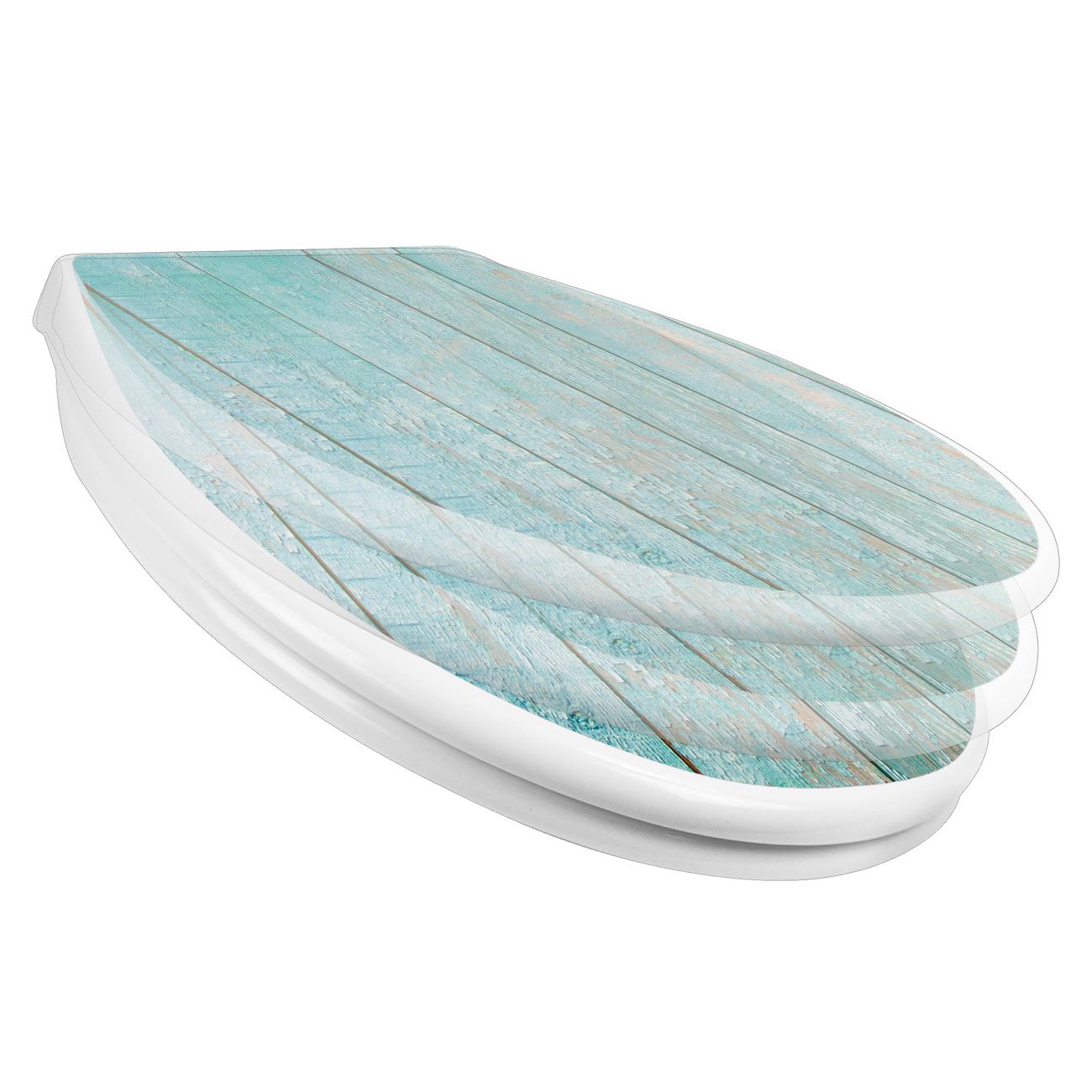 Toilettendeckel weiß mit Absenkautomatik Motiv Blaue Planken