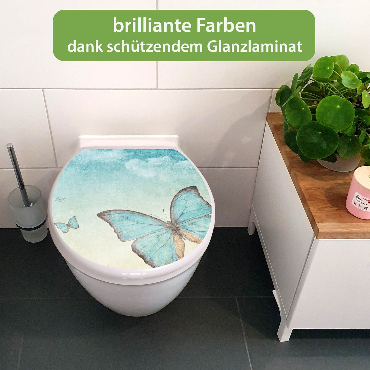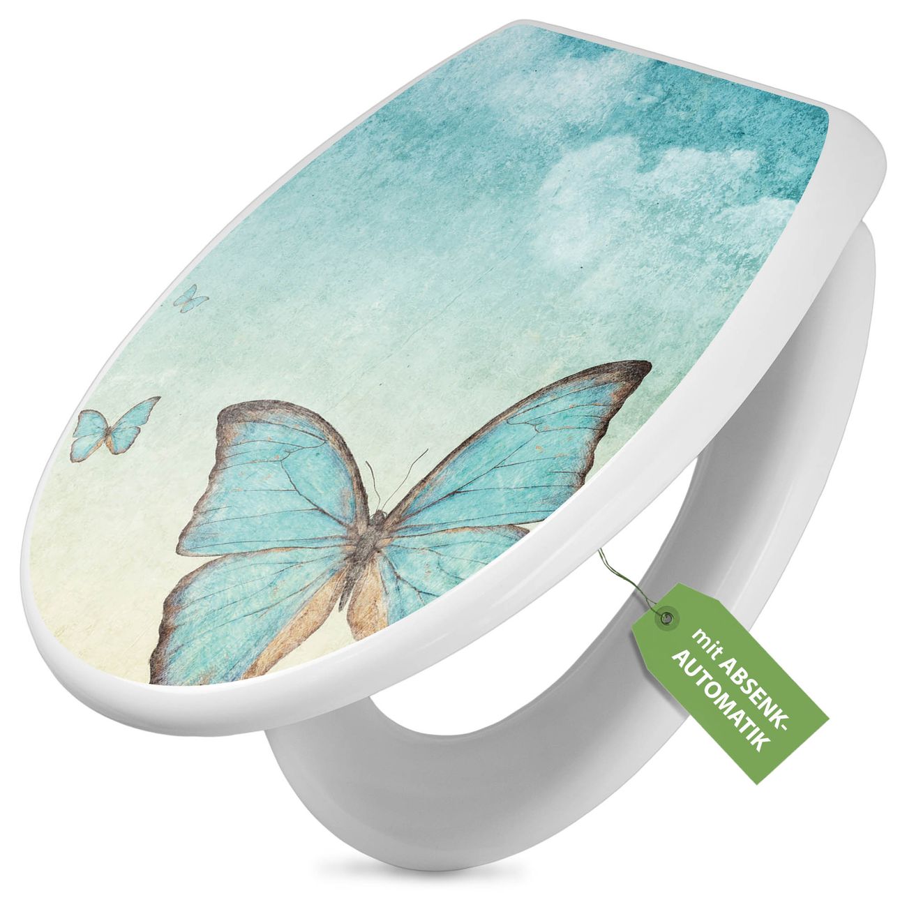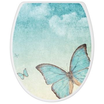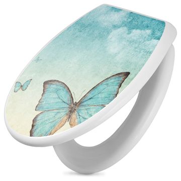 Toilettendeckel weiß mit Absenkautomatik Motiv Blaue Schmetterlinge