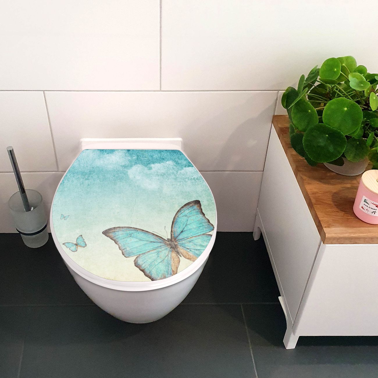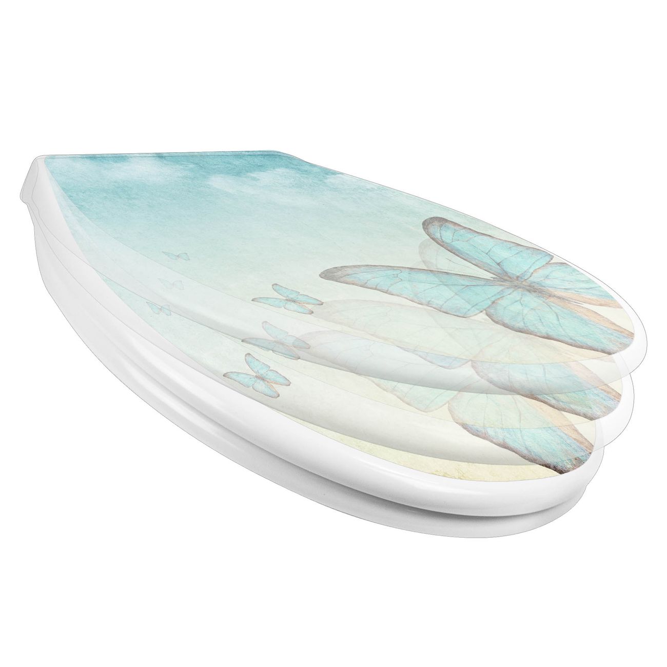 Toilettendeckel weiß mit Absenkautomatik Motiv Blaue Schmetterlinge