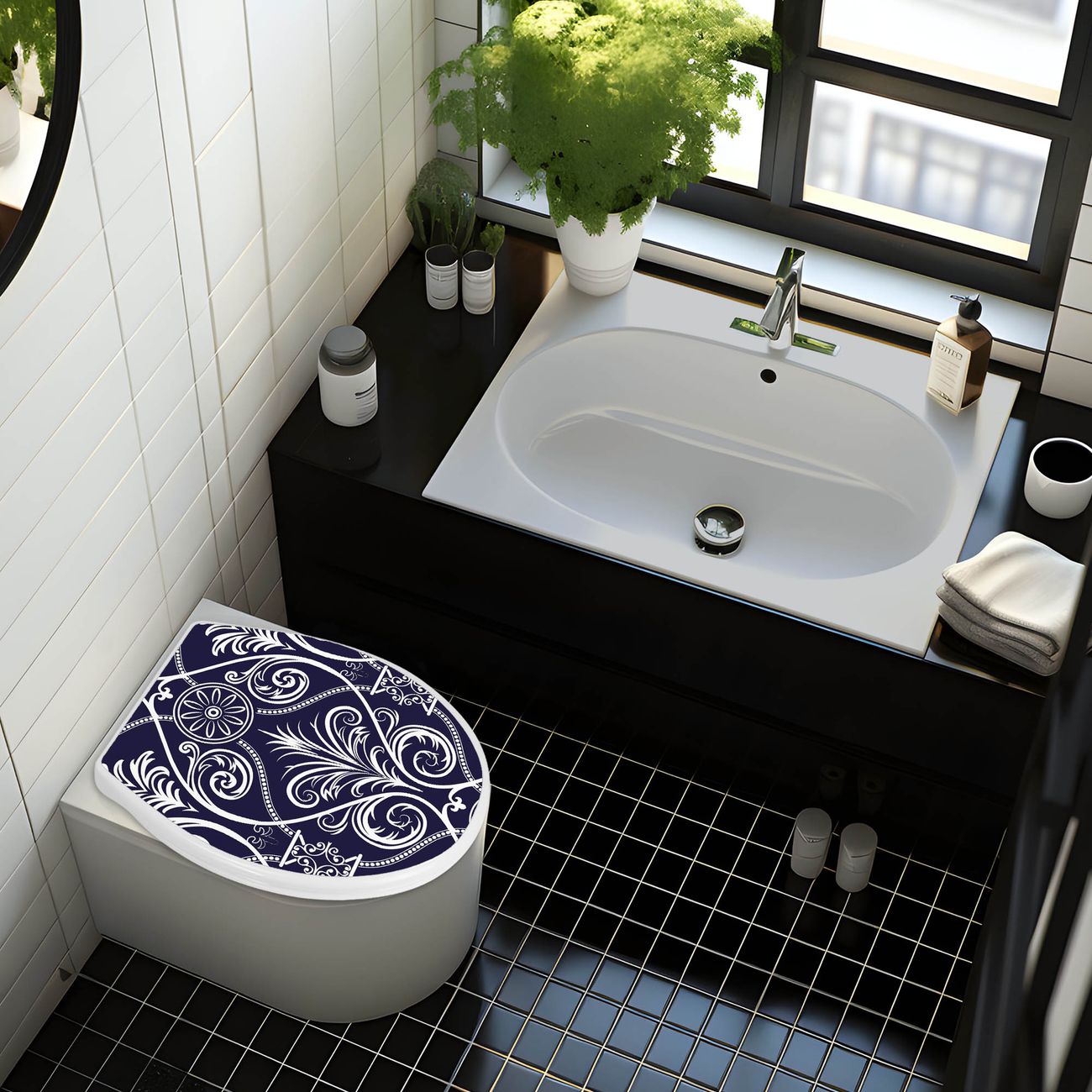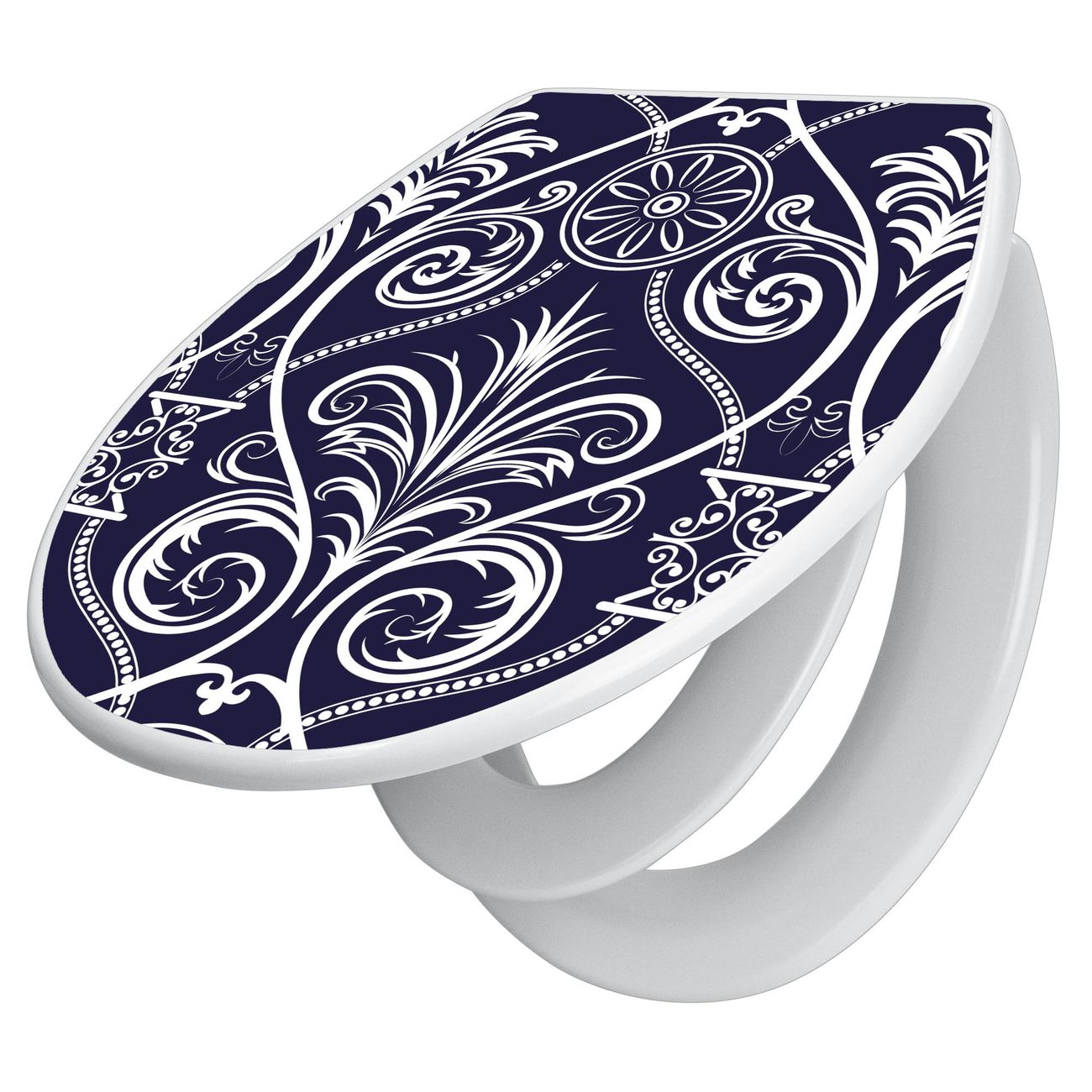 Toilettendeckel weiß mit Absenkautomatik Motiv Blaue Tapete