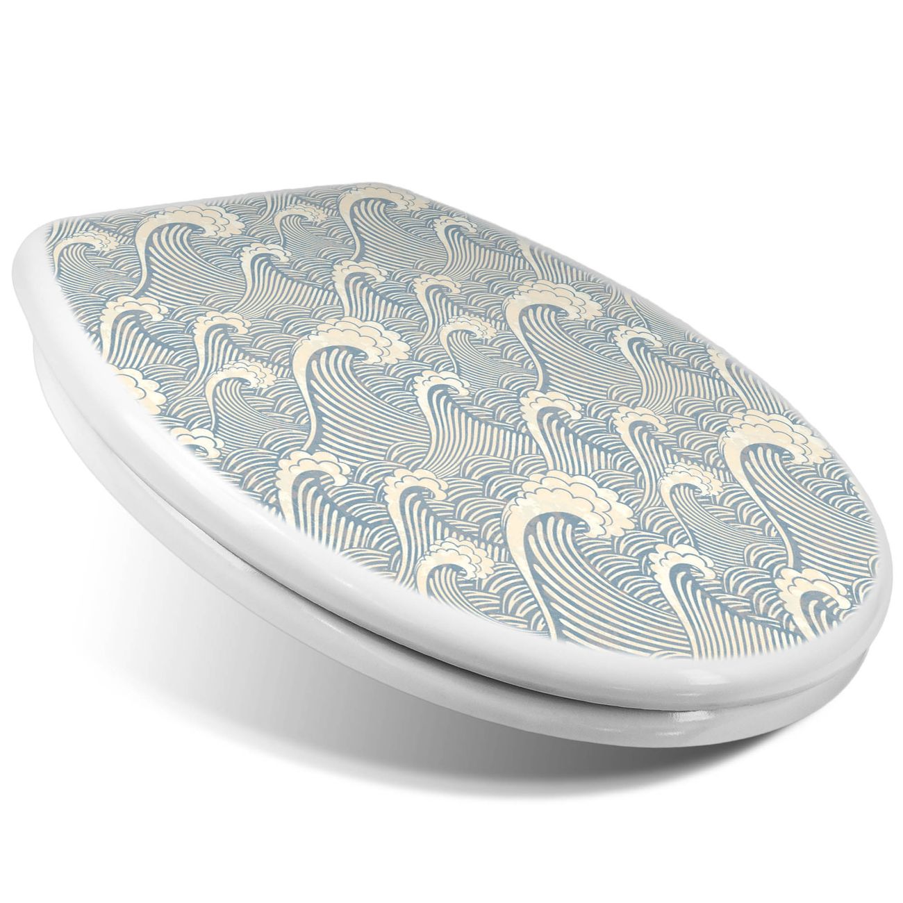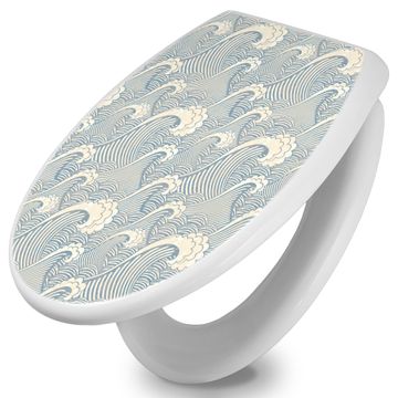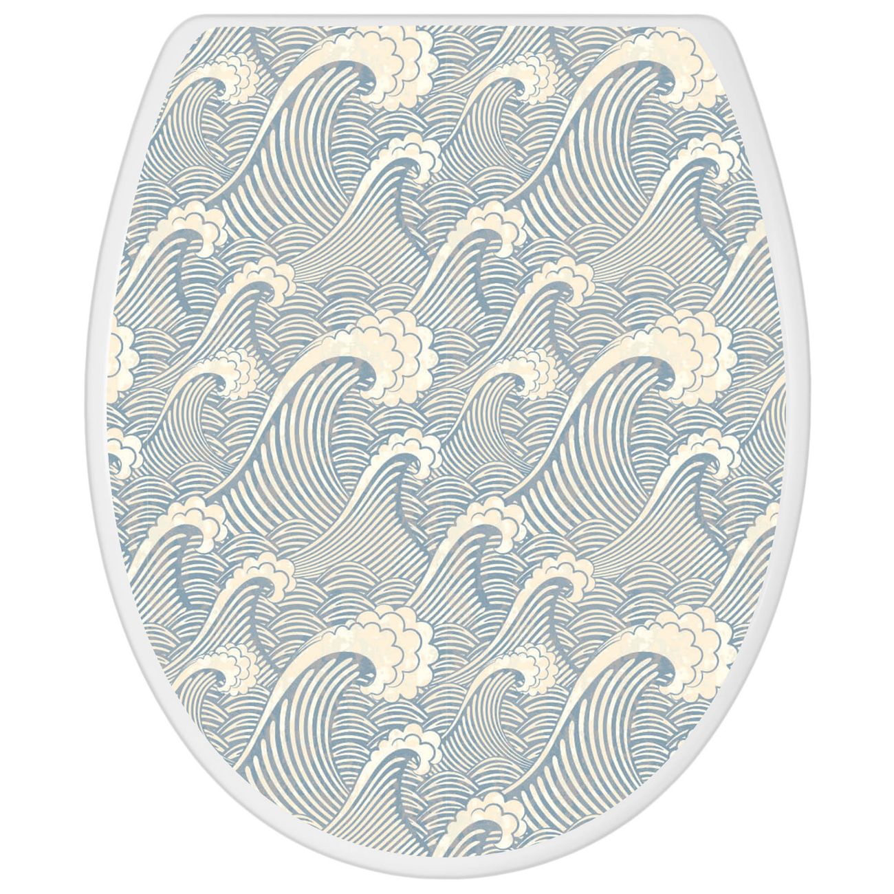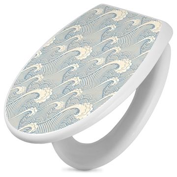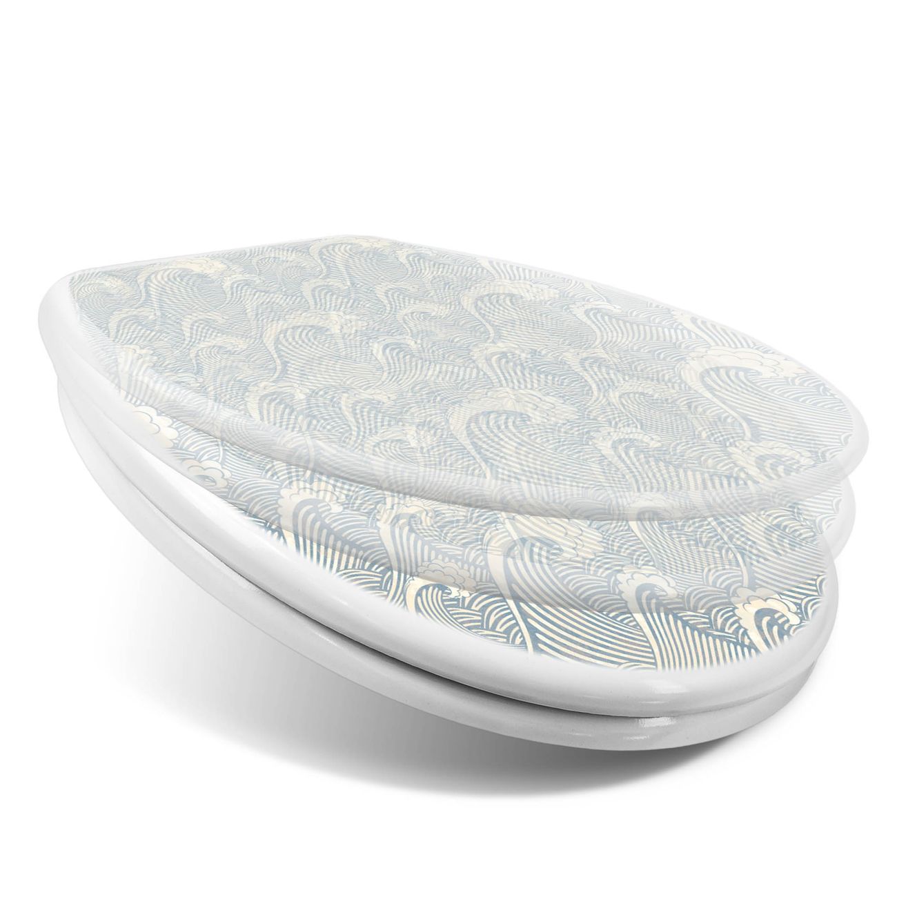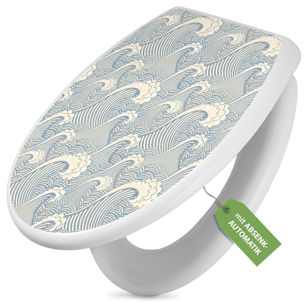 Toilettendeckel weiß mit Absenkautomatik Motiv Blaue Wellen