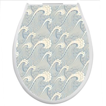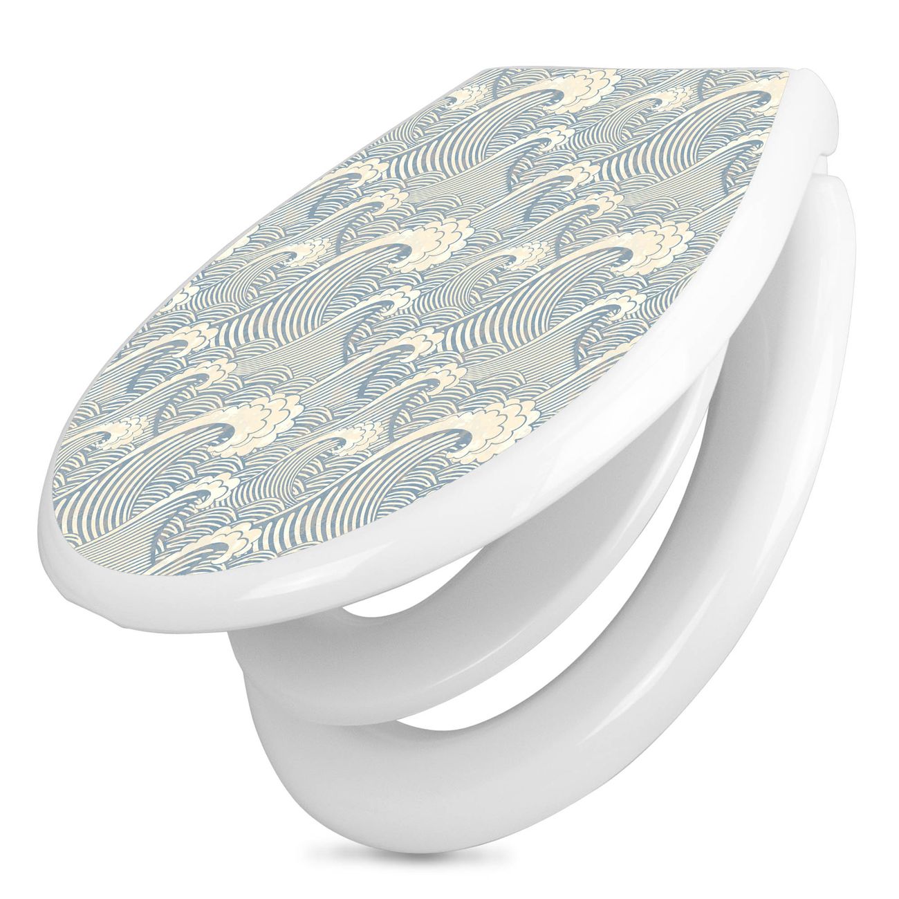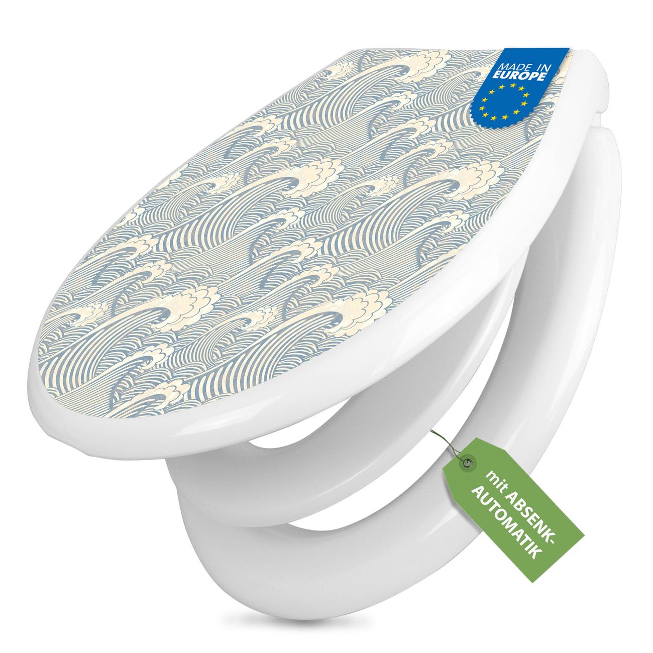 Toilettendeckel weiß mit Absenkautomatik Motiv Blaue Wellen