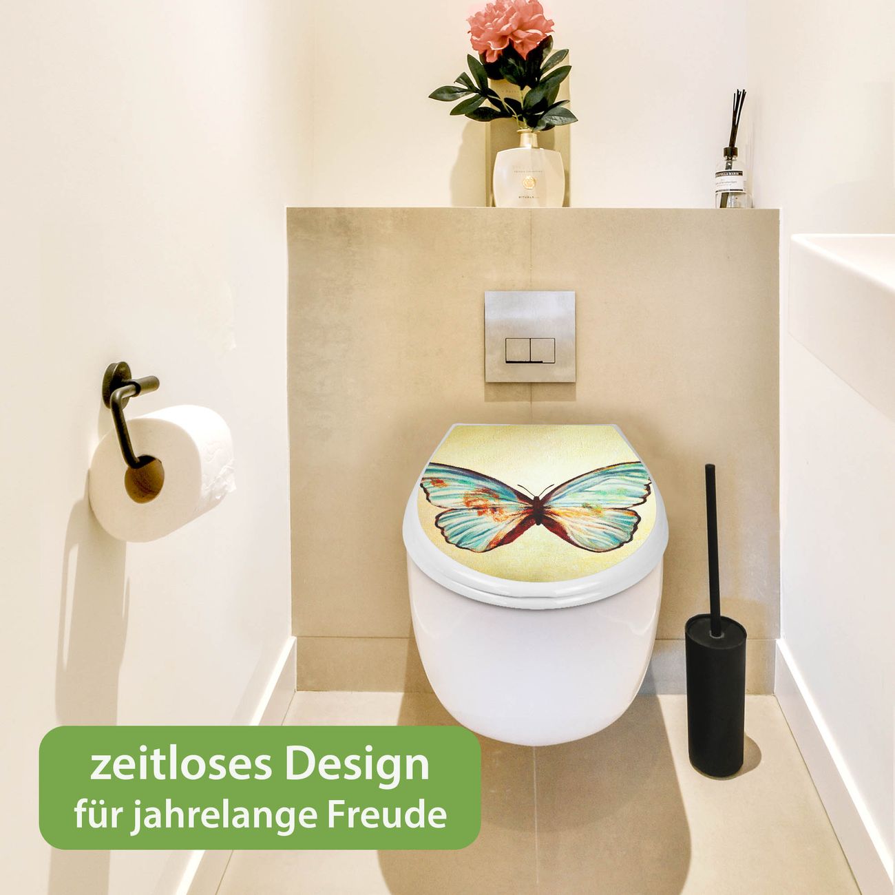 Toilettendeckel weiß mit Absenkautomatik Motiv Blauer Falter