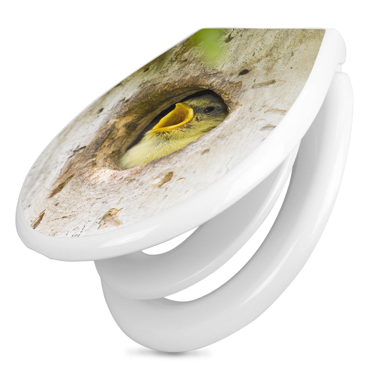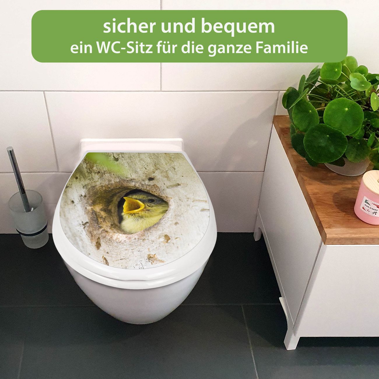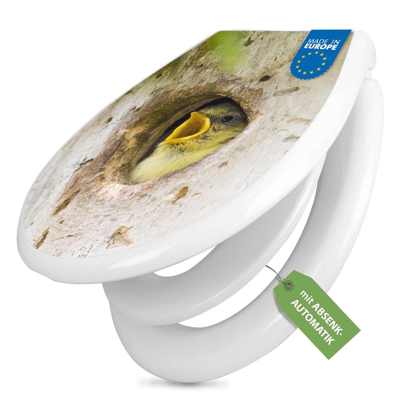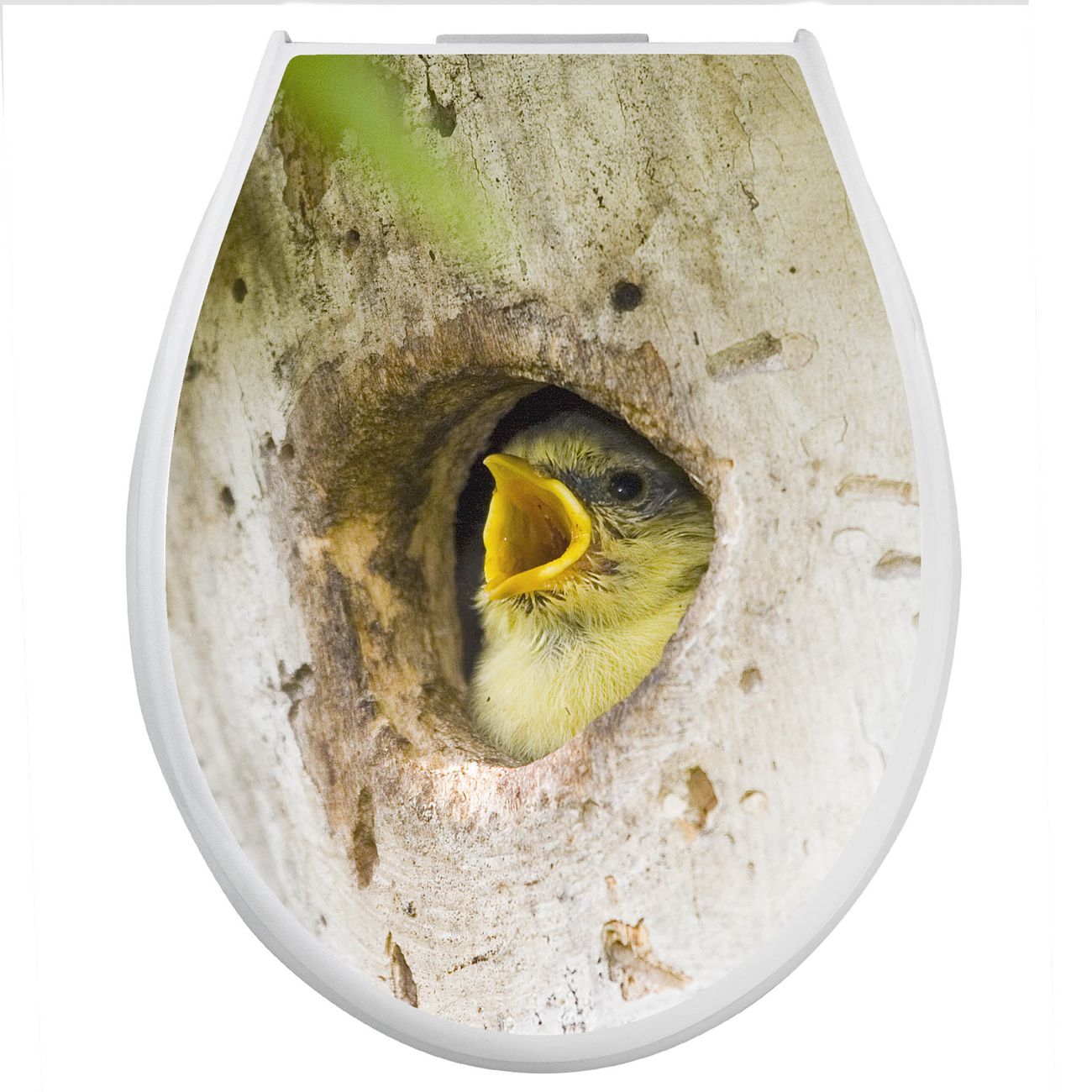 Toilettendeckel weiß mit Absenkautomatik Motiv Blaumeise