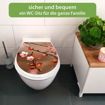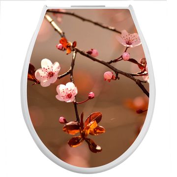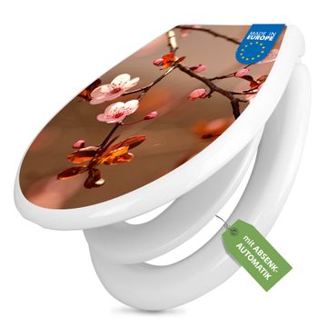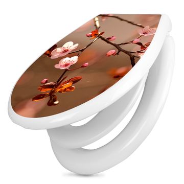 Toilettendeckel weiß mit Absenkautomatik Motiv Blühender Kirschzweig