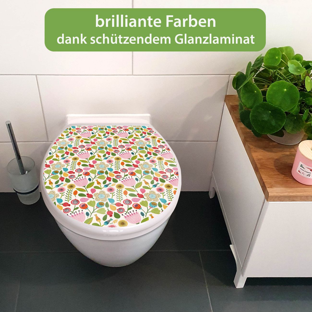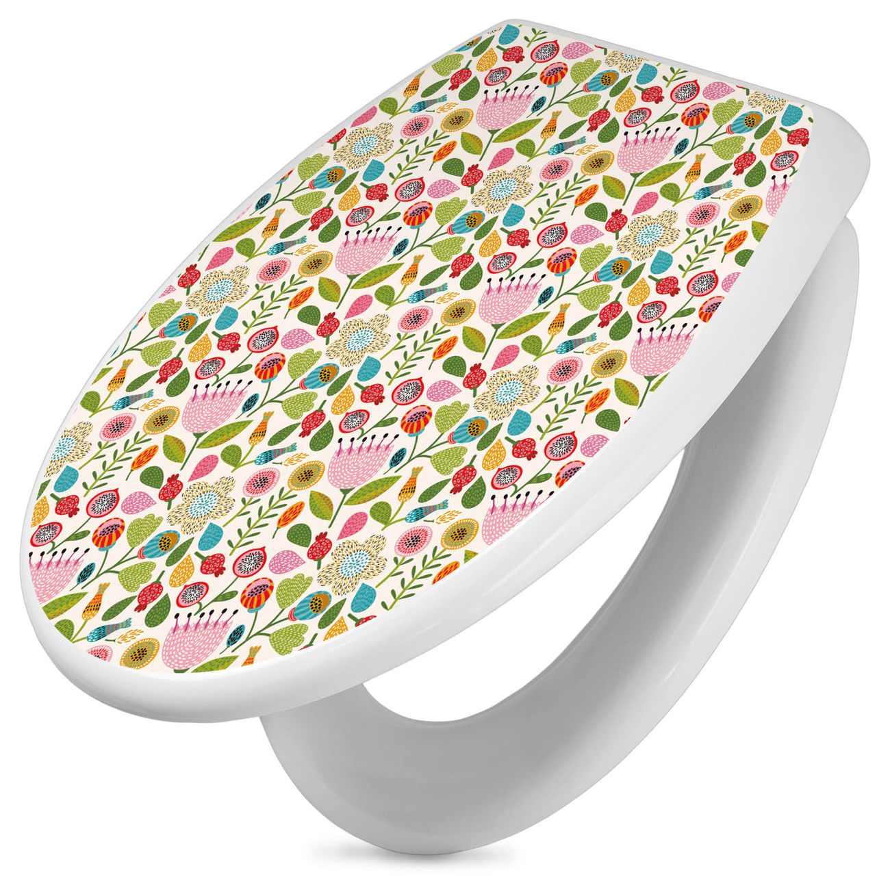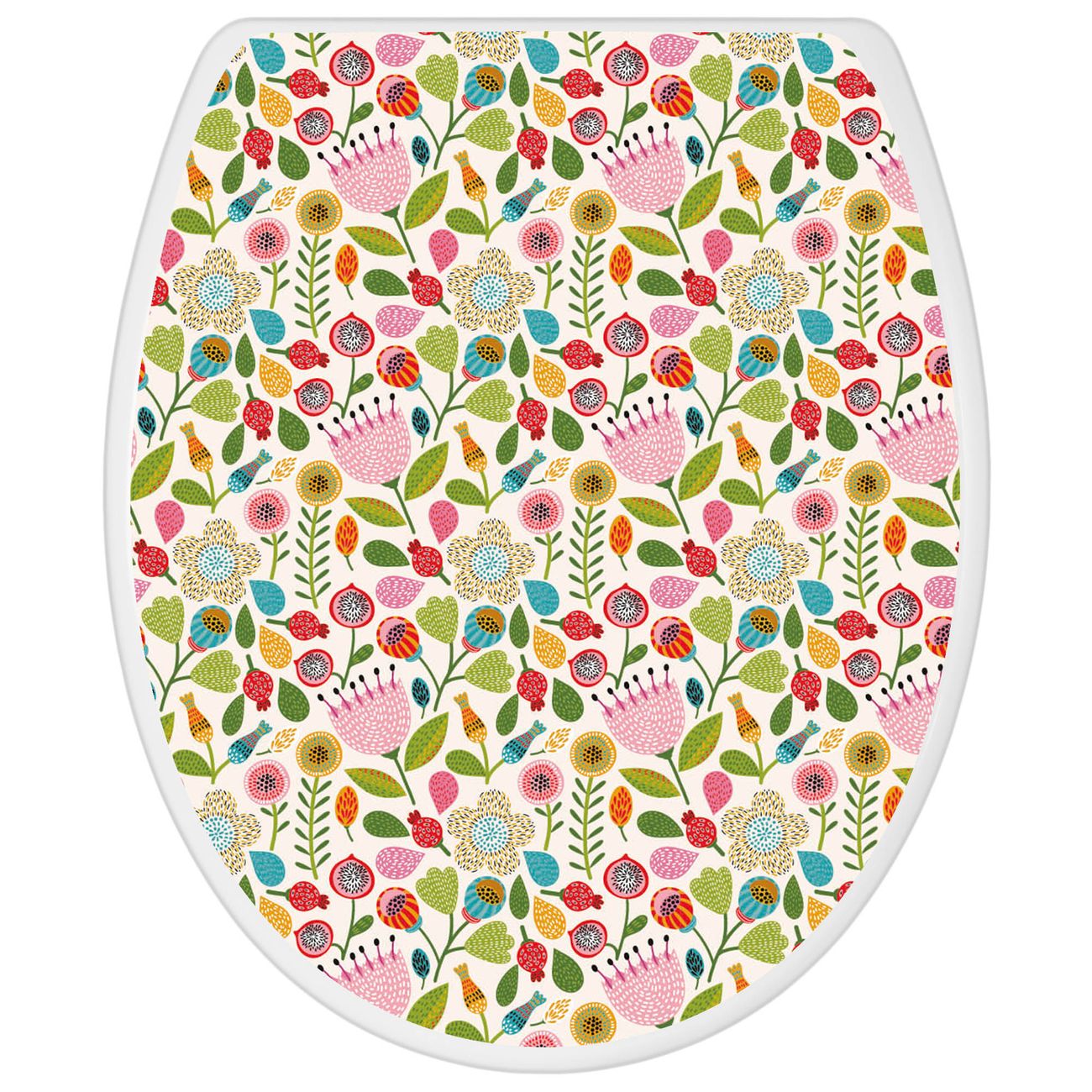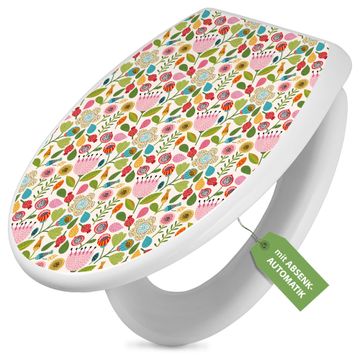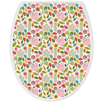 Toilettendeckel weiß mit Absenkautomatik Motiv Blumen Naiv