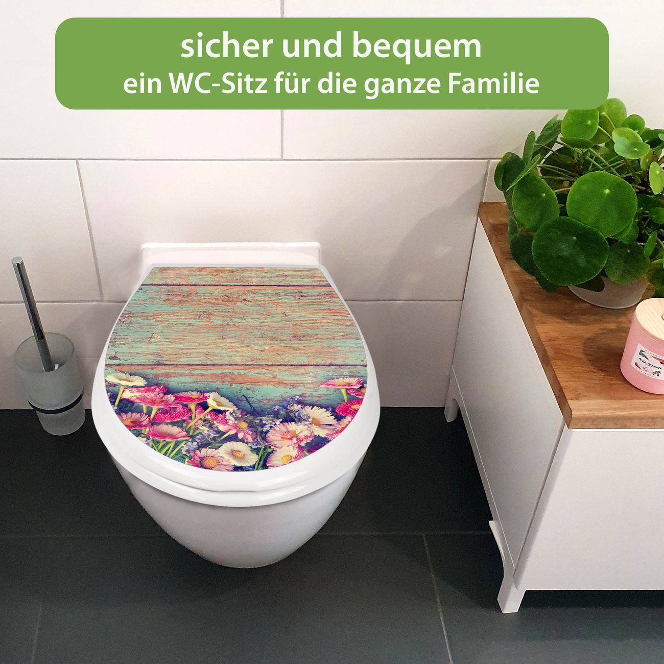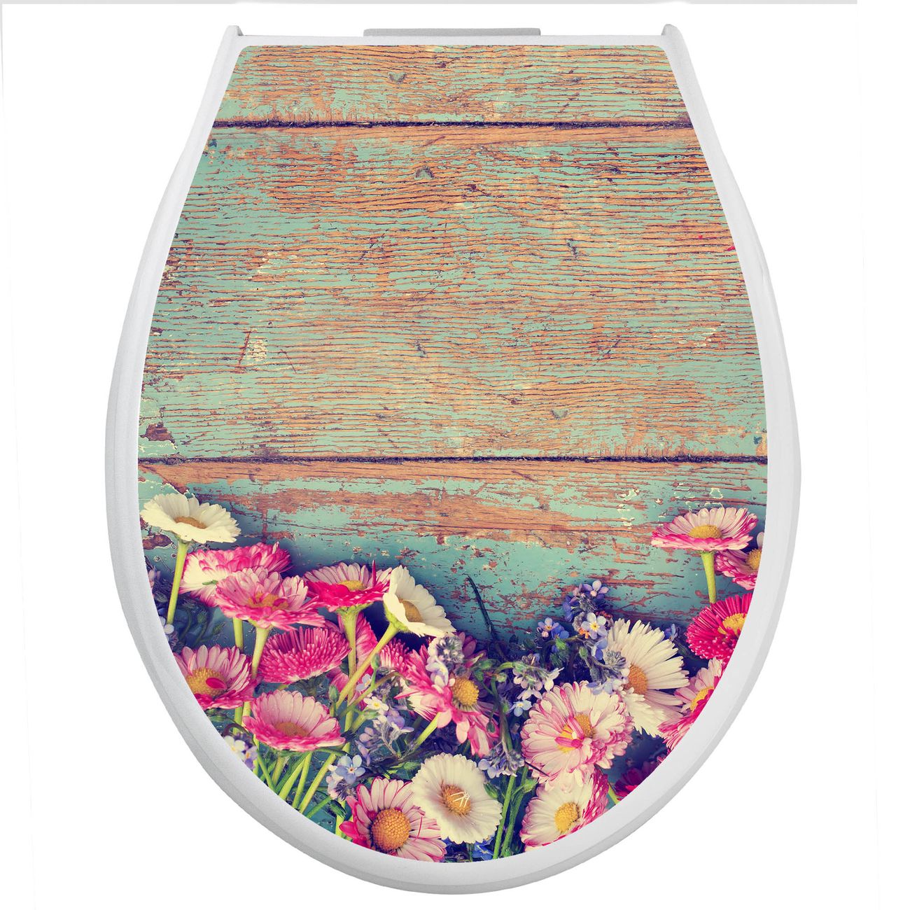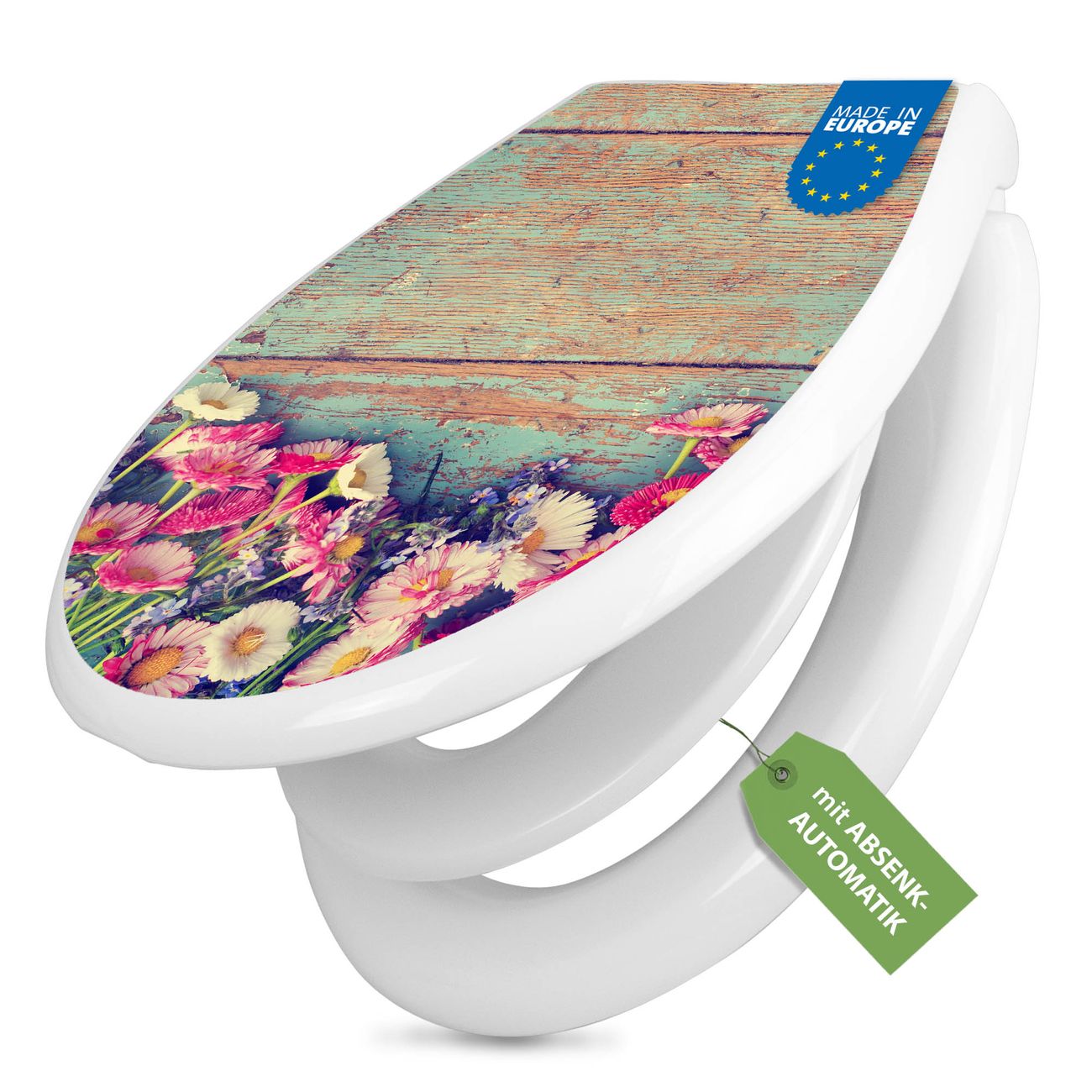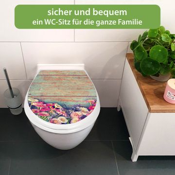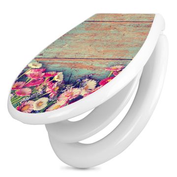 Toilettendeckel weiß mit Absenkautomatik Motiv Blumenpfücken