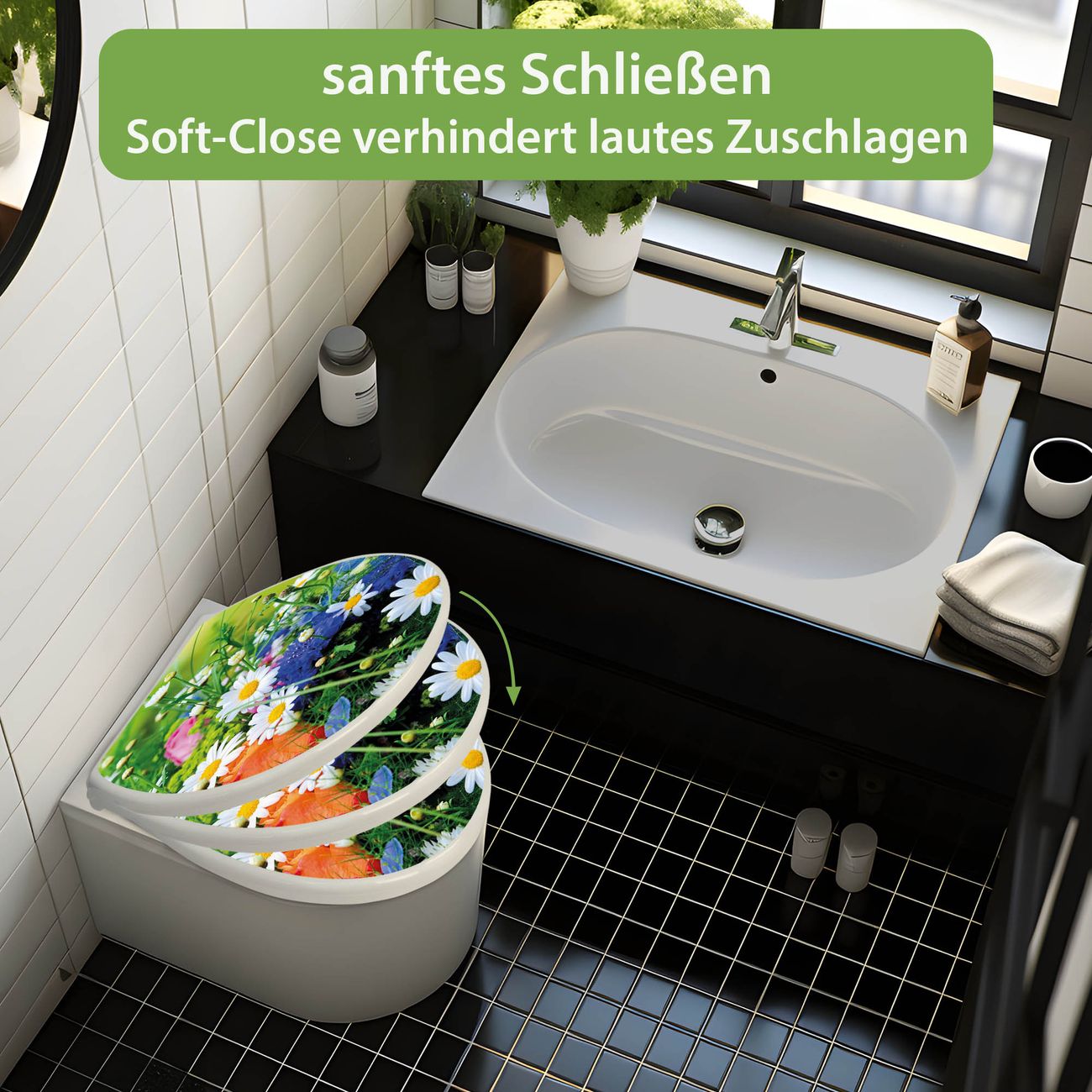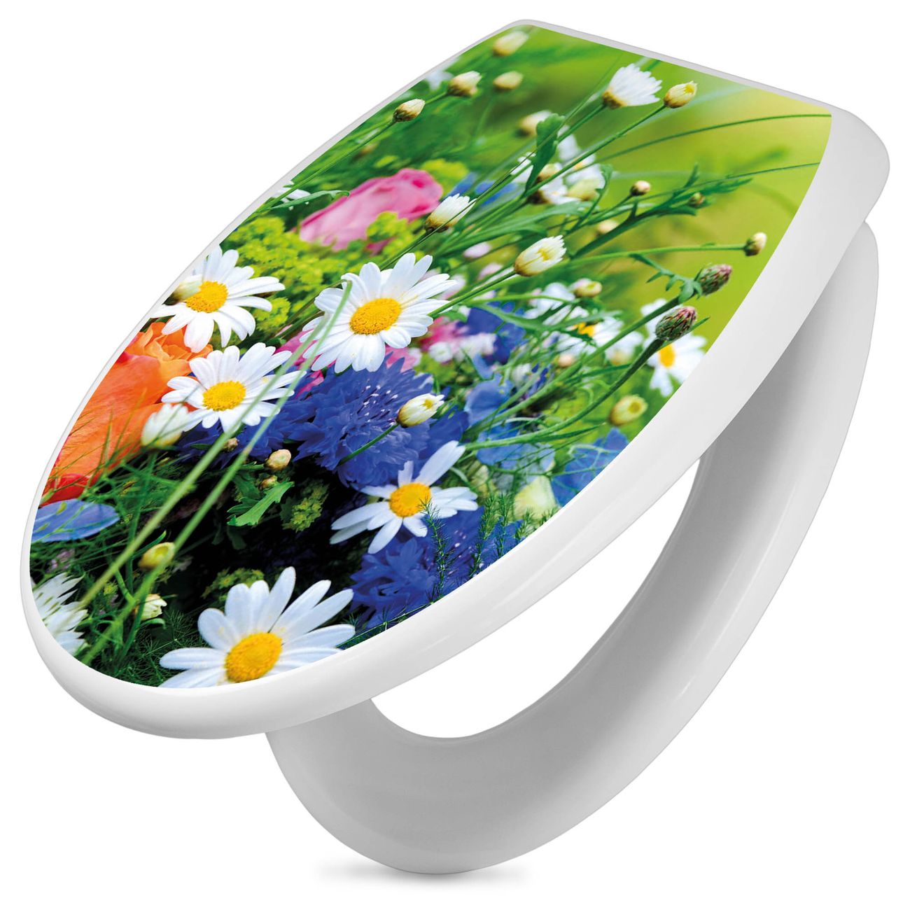 Toilettendeckel weiß mit Absenkautomatik Motiv Blumenstrauß