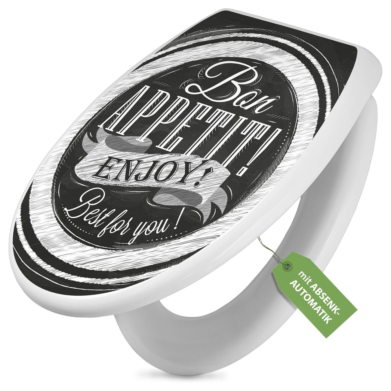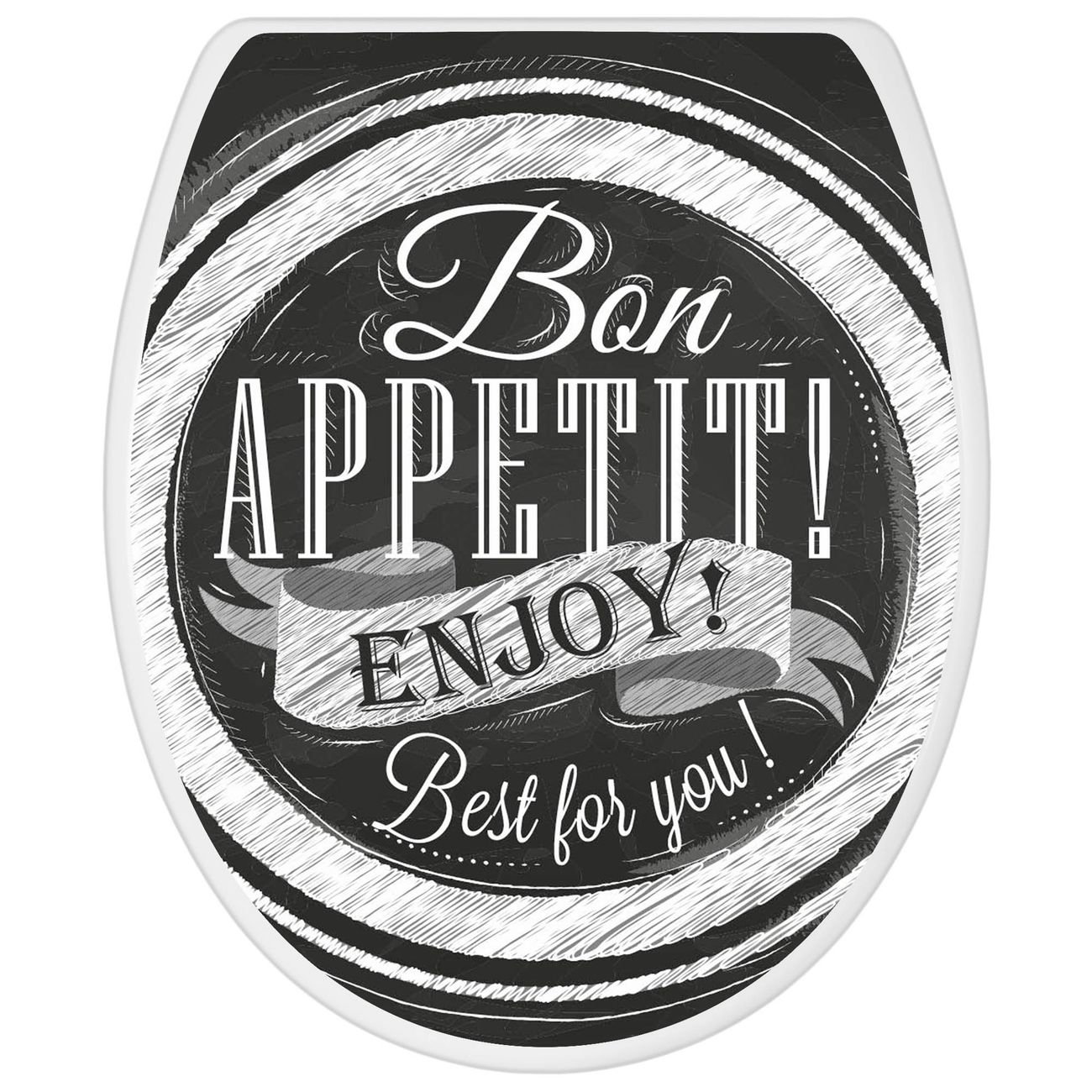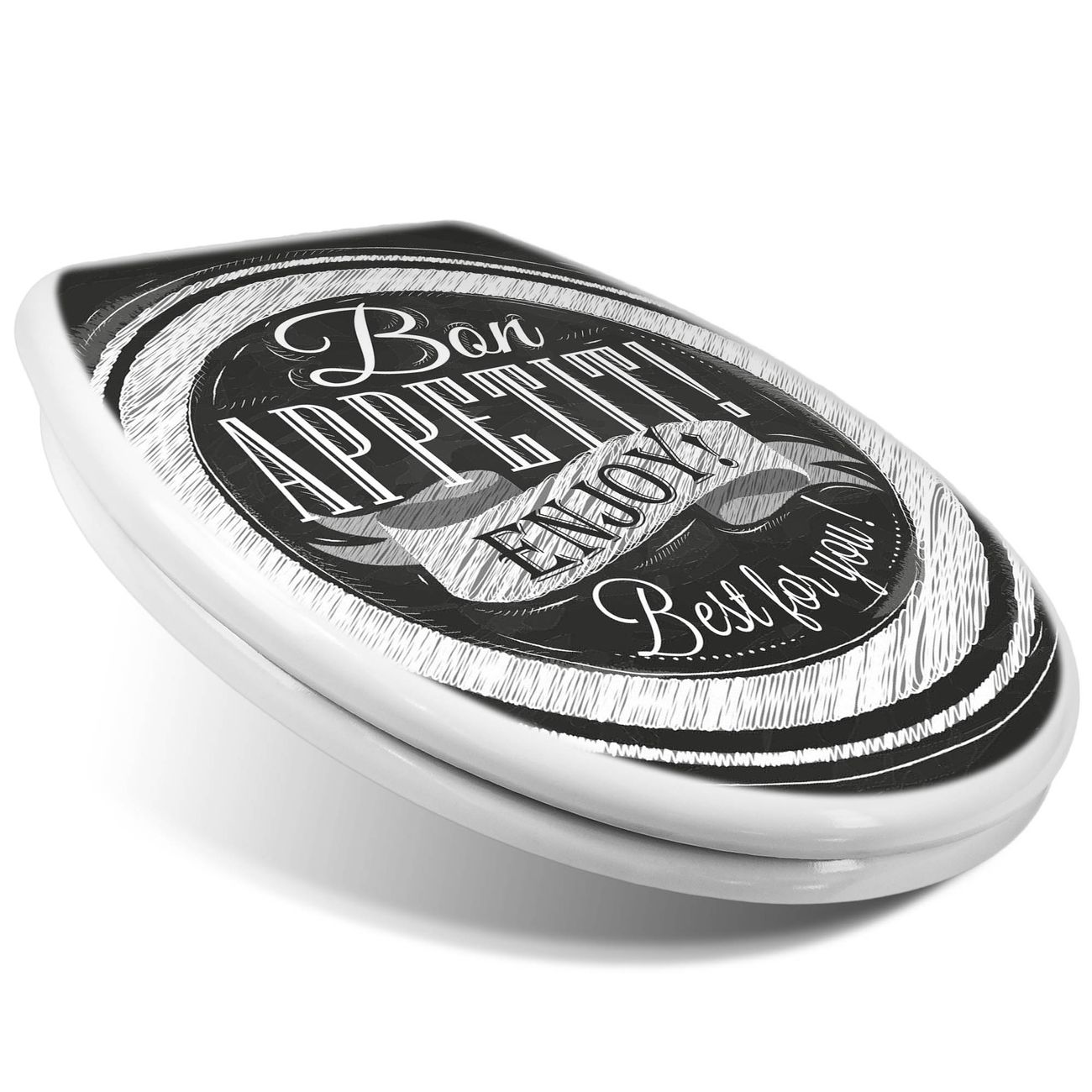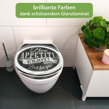 Toilettendeckel weiß mit Absenkautomatik Motiv Bon Appetit