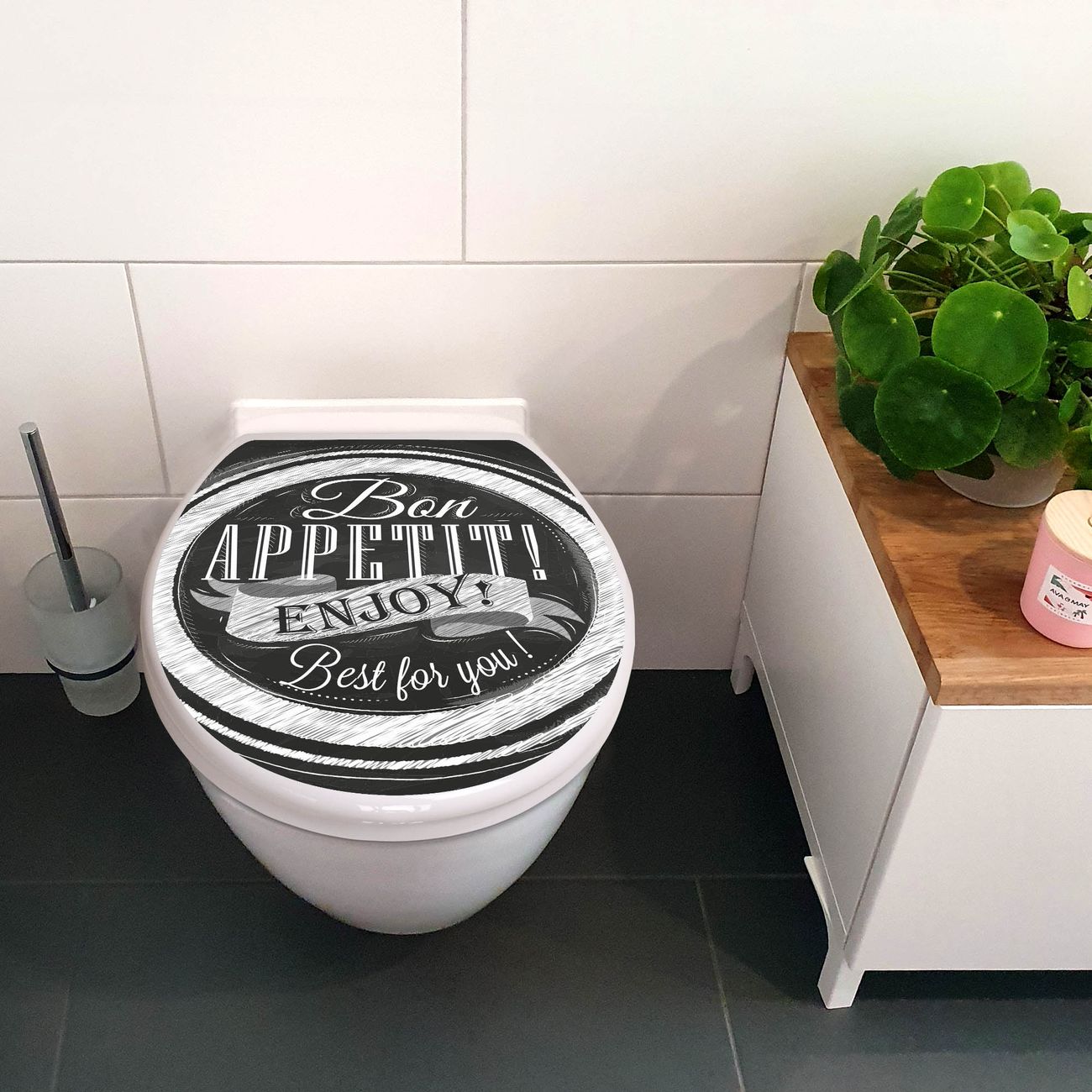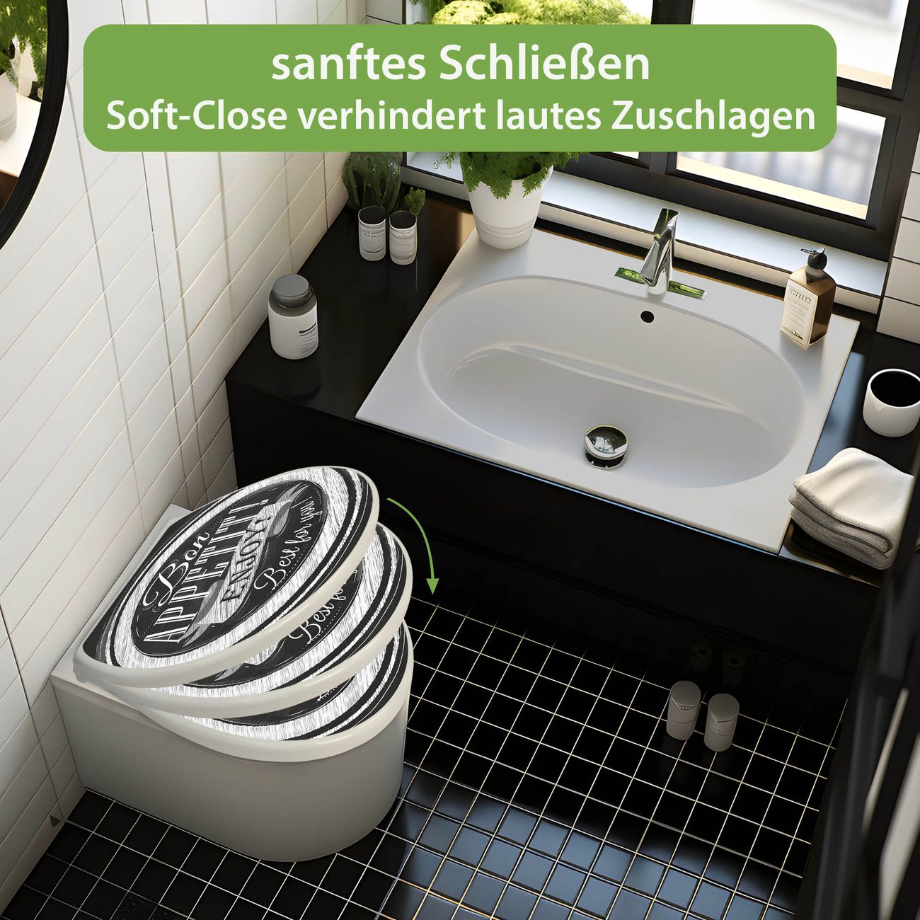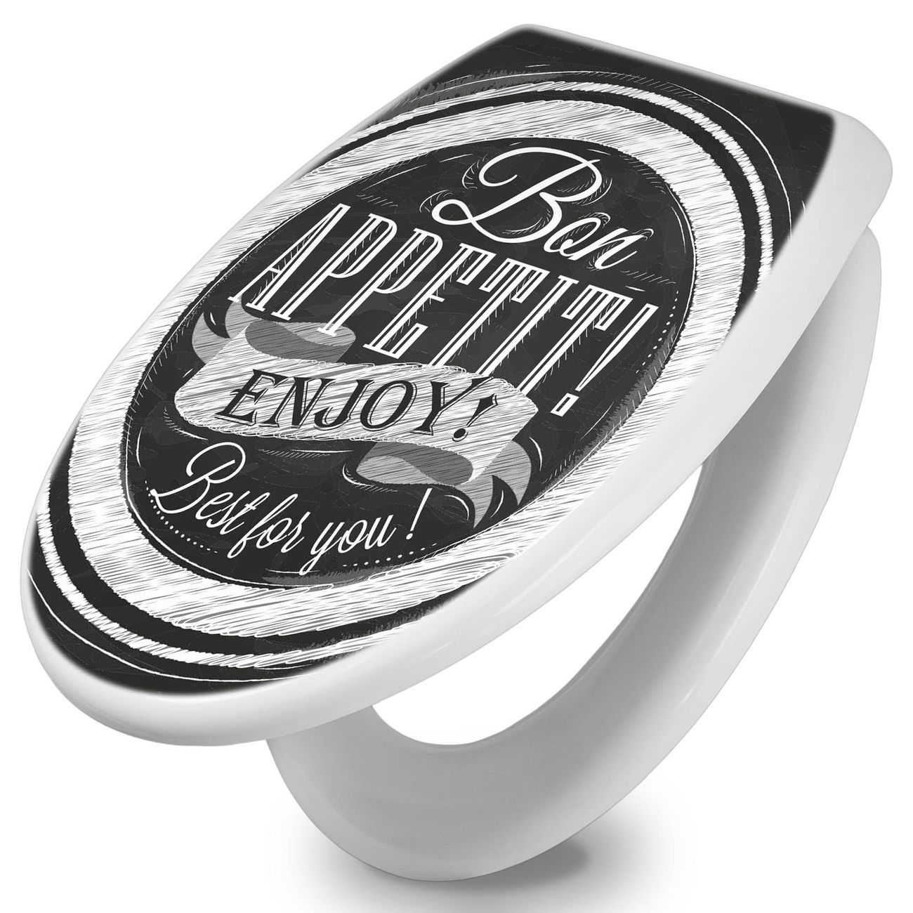 Toilettendeckel weiß mit Absenkautomatik Motiv Bon Appetit