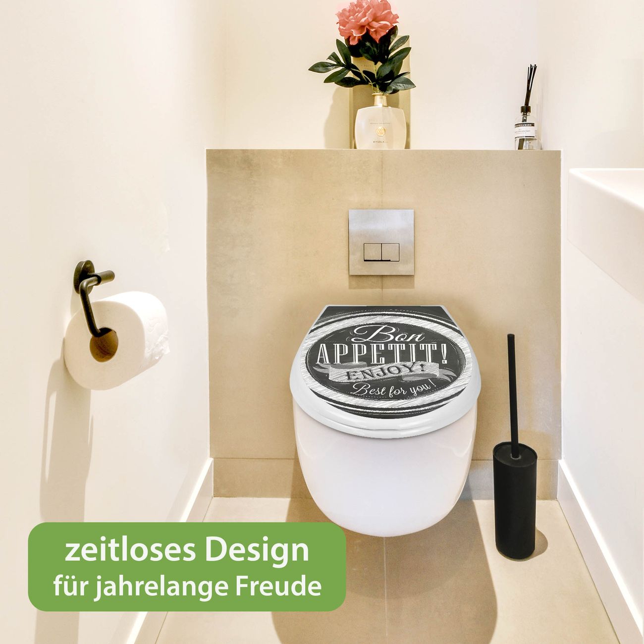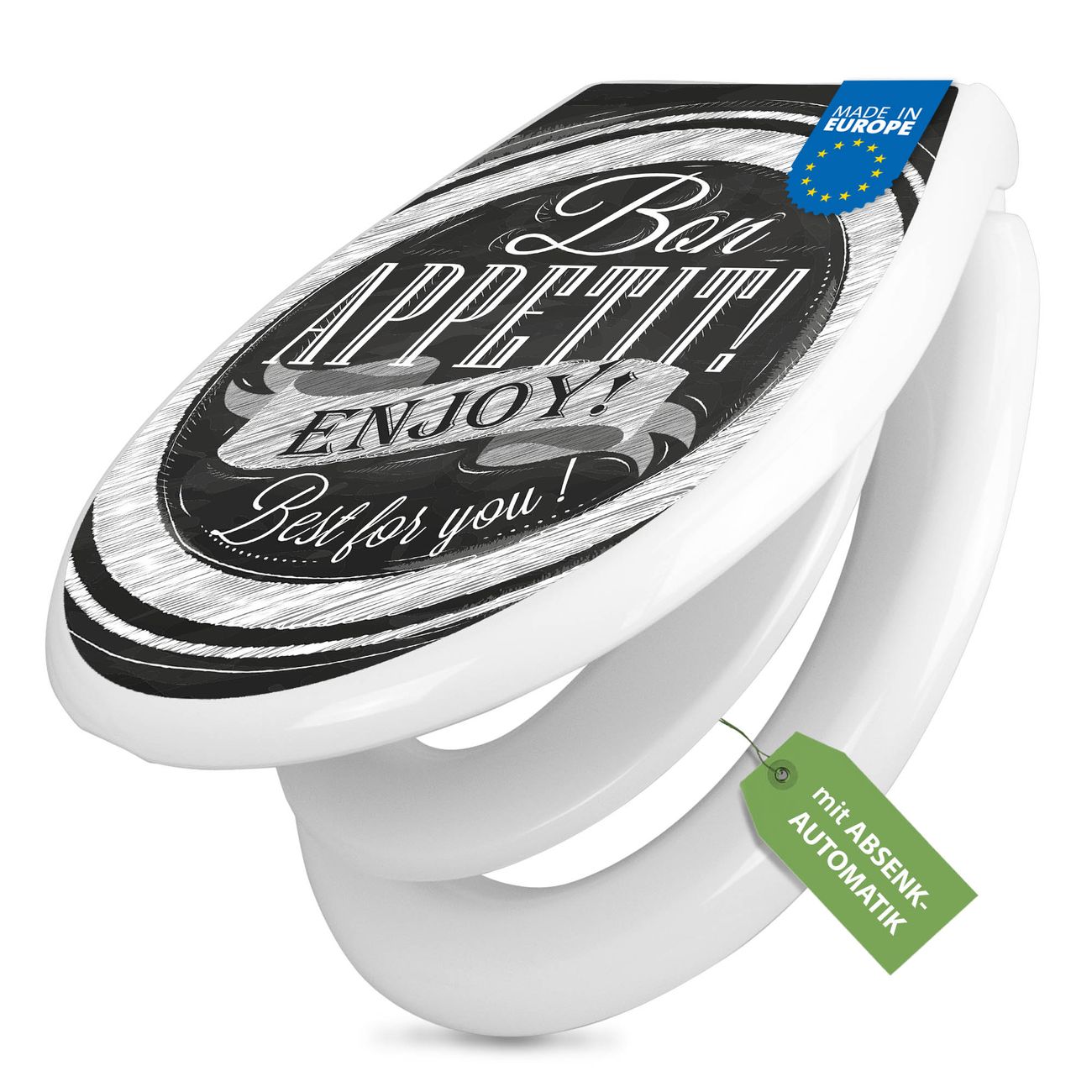 Toilettendeckel weiß mit Absenkautomatik Motiv Bon Appetit
