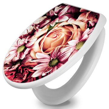 Toilettendeckel weiß mit Absenkautomatik Motiv Brautstrauss
