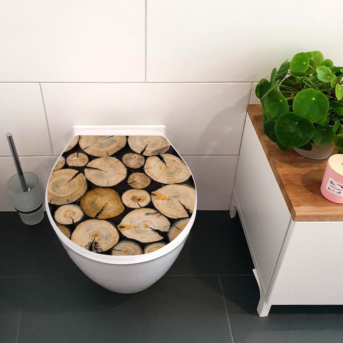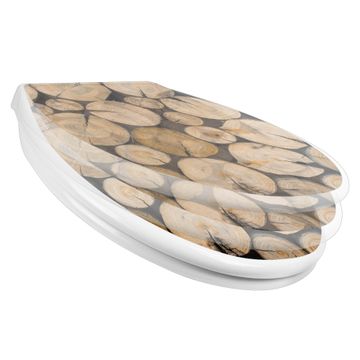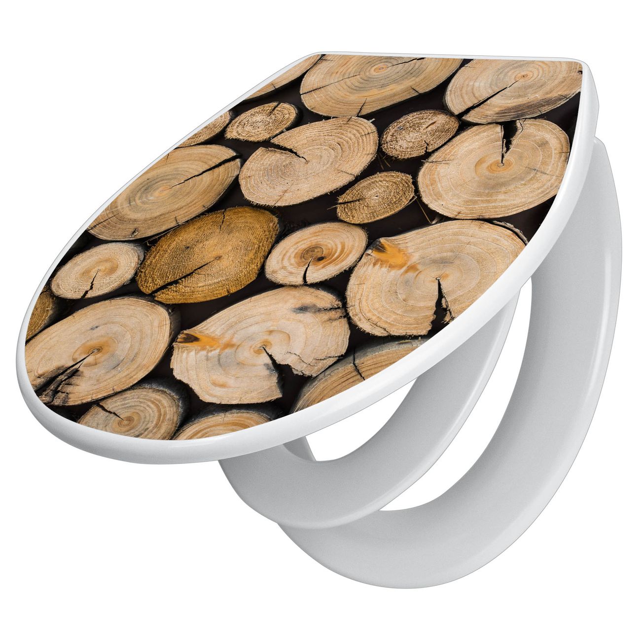 Toilettendeckel weiß mit Absenkautomatik Motiv Brennholz