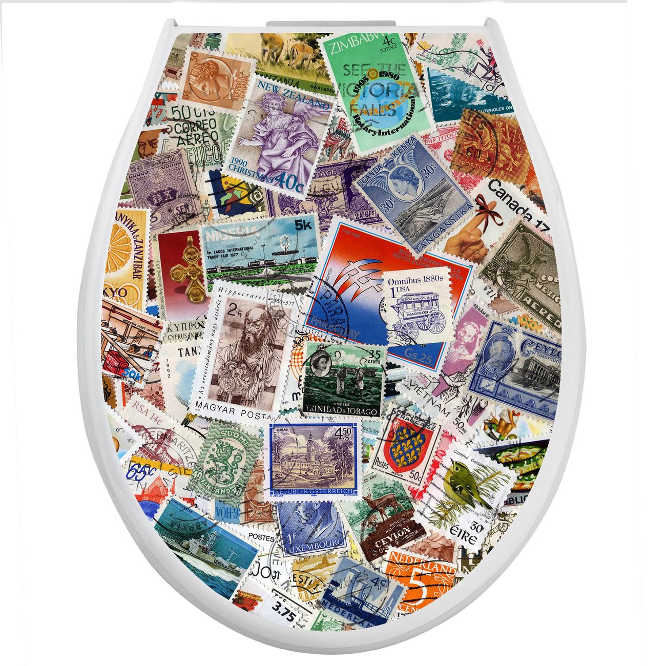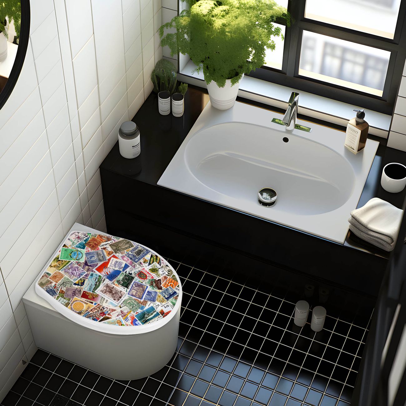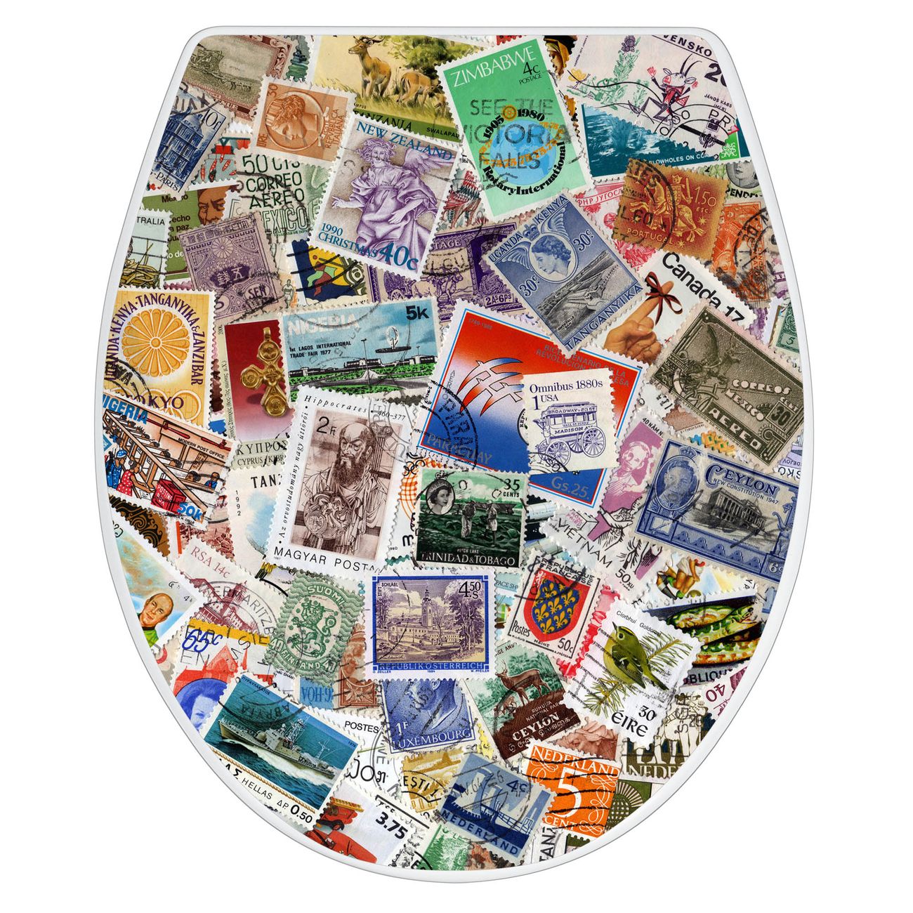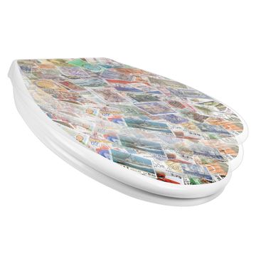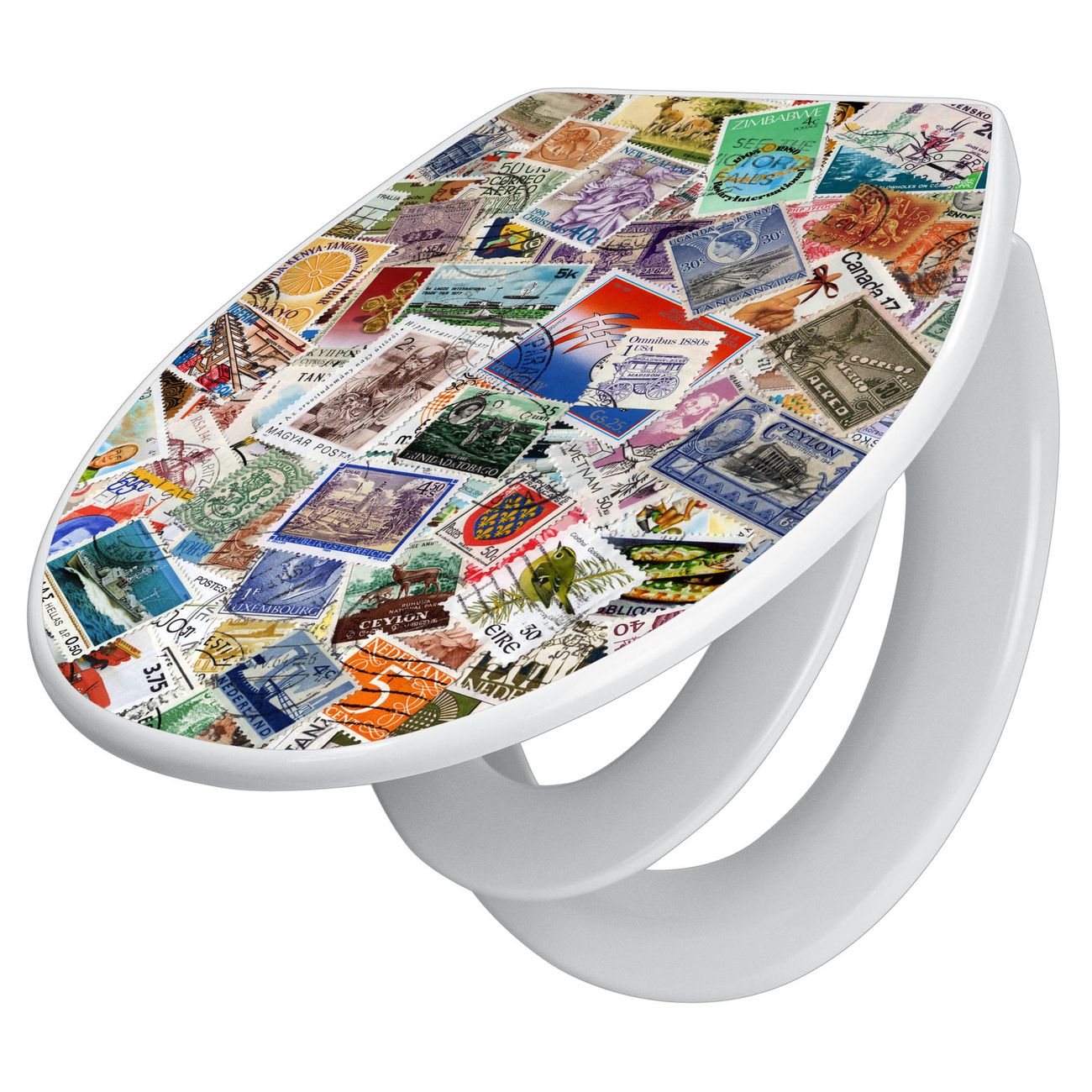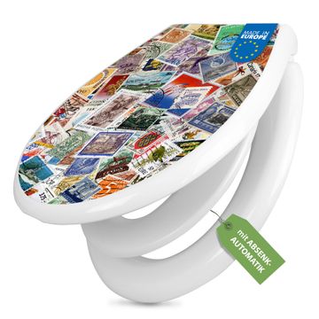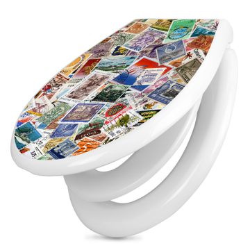 Toilettendeckel weiß mit Absenkautomatik Motiv Briefmarken