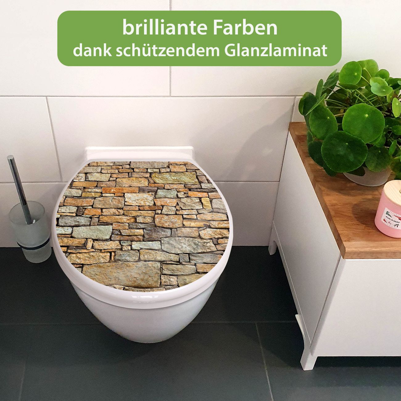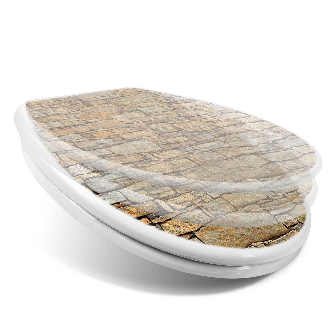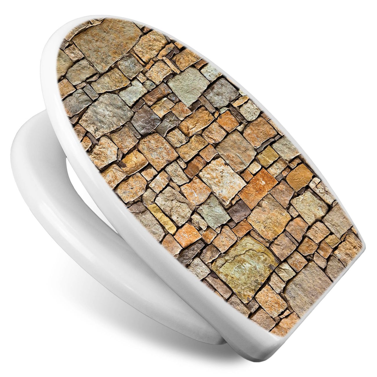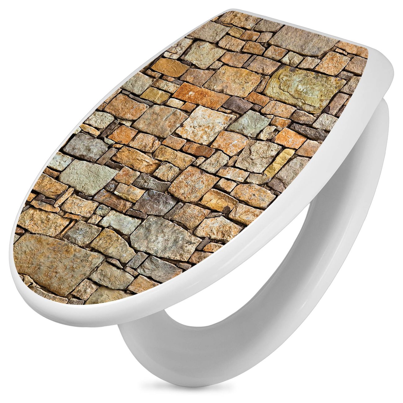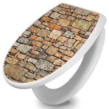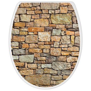 Toilettendeckel weiß mit Absenkautomatik Motiv Bruchsteinmauer