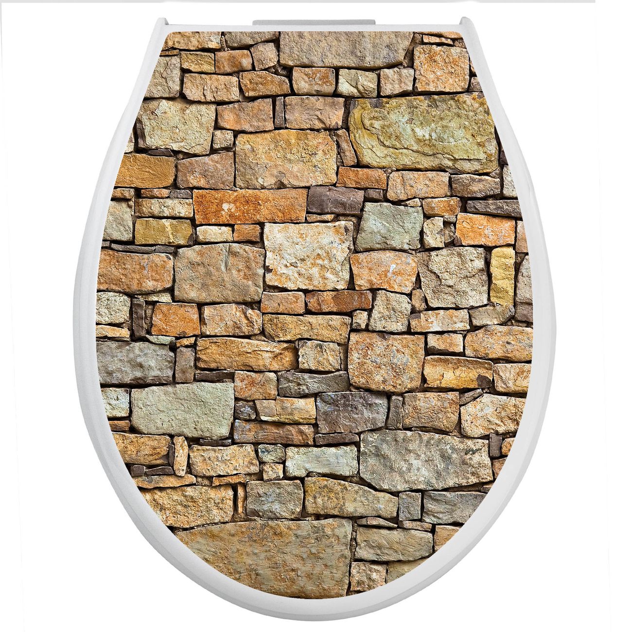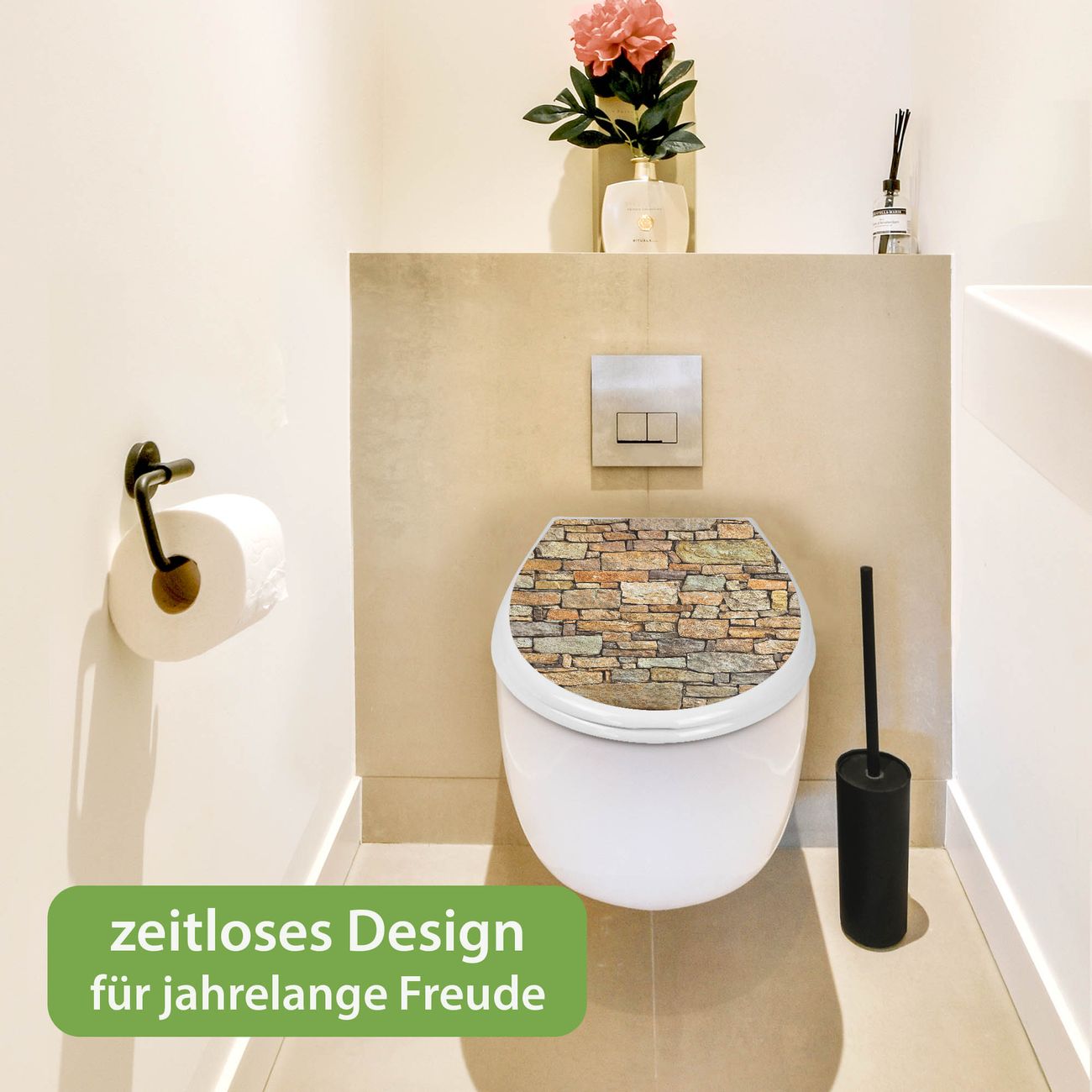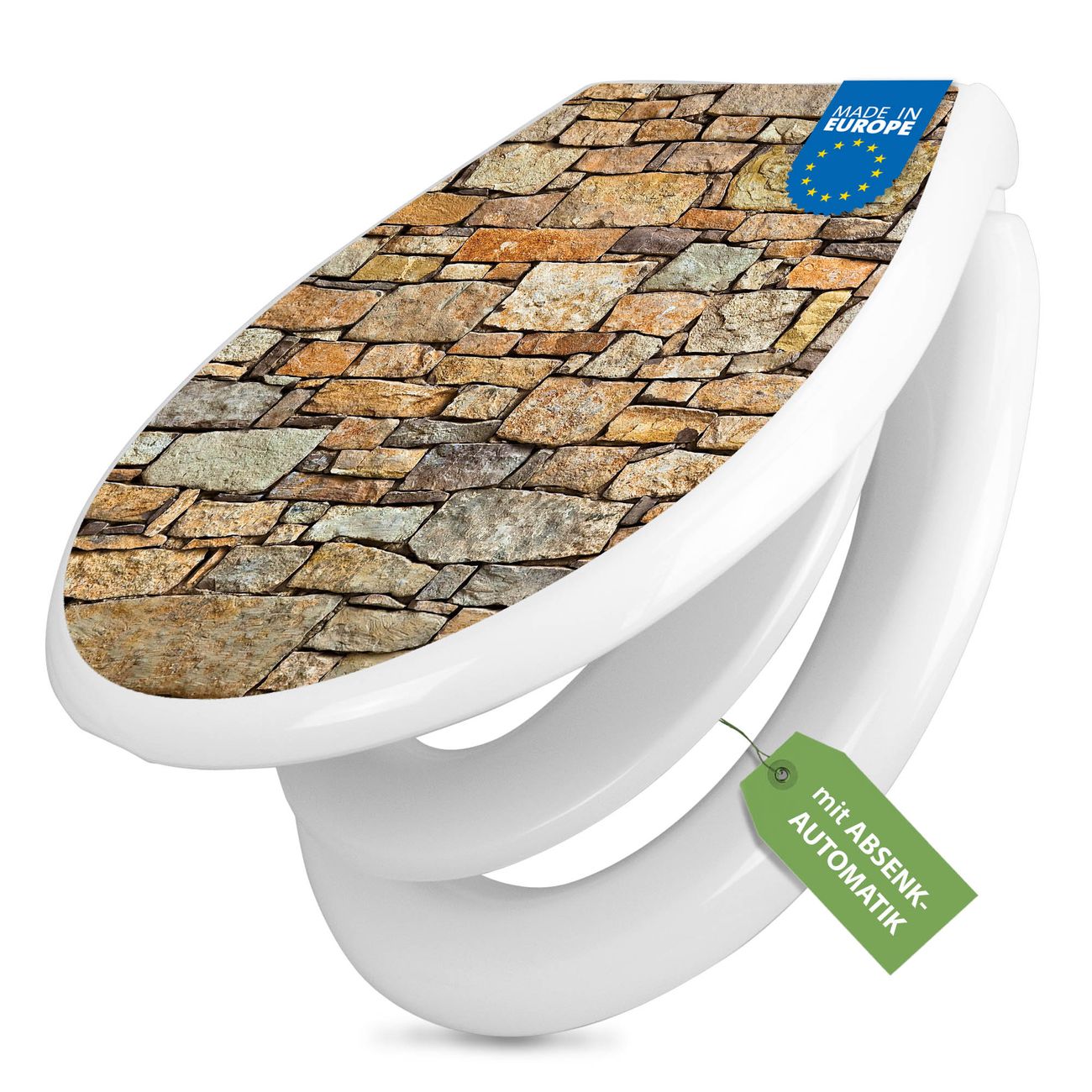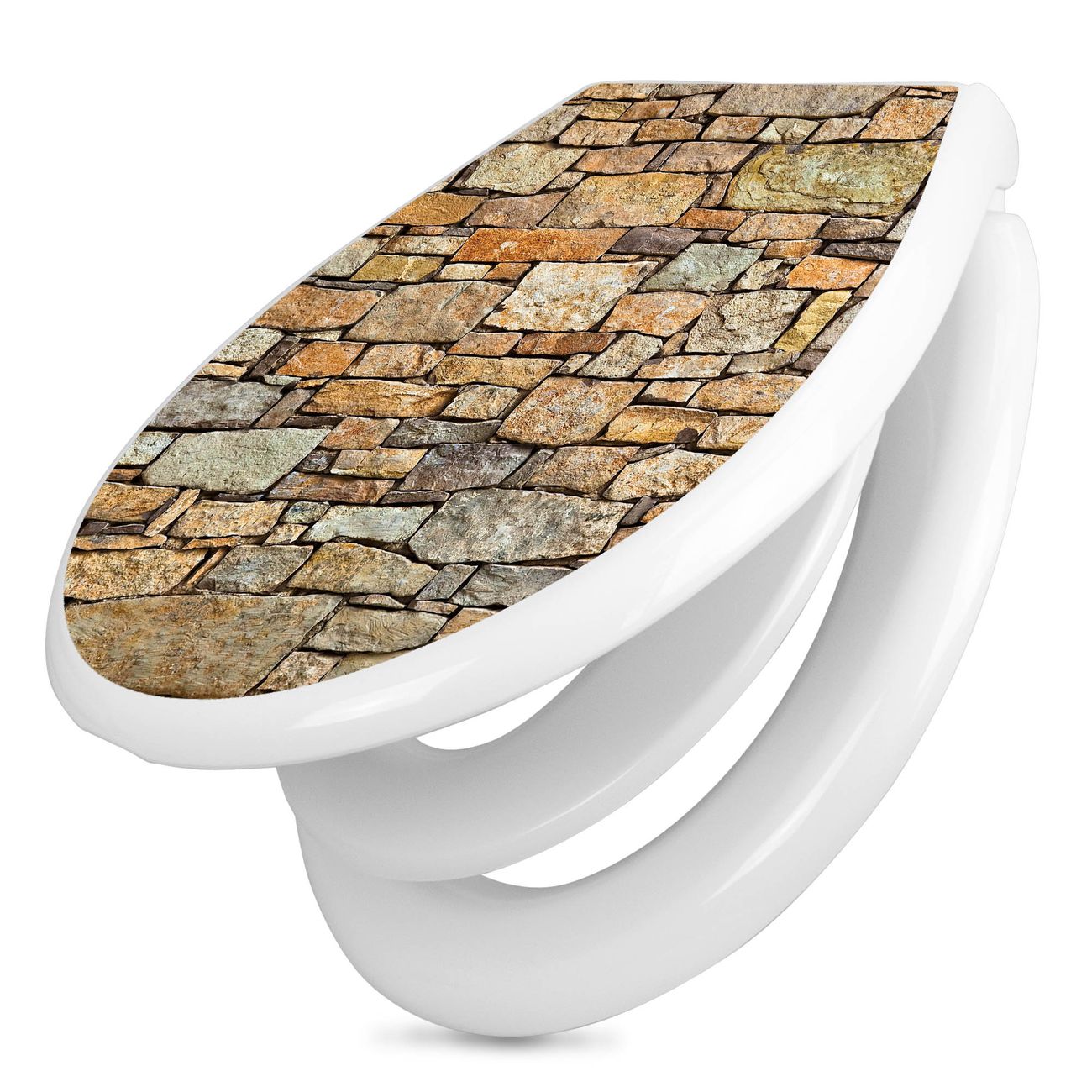 Toilettendeckel weiß mit Absenkautomatik Motiv Bruchsteinmauer