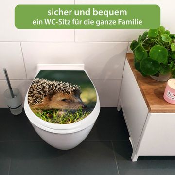 FUNKTION:Mit dem banjado Familien WC Sitz mit Absenkautomatik und dem Motiv Motiv Bruno verbinden Sie Design mit Funktionalität. Sie erhalten den Toilettendeckel in bewährt guter Qualität mit Montagematerial passend auf alle Euro-WC-Becken. Die Gesamtgröße beträgt 37,1cm x 44,9cm x 5cm, die Grundfarbe ist weiß.</p> DESIGN:Der Klodeckel in weiß mit Motiv Motiv Bruno hat eine ansprechende Optik, eine besondere Form und ist sehr stabil. Das Motiv besteht aus einer farbbrillianten Motivfolie, die durch ein Schutzlaminat zusätzlich vor Kratzern schützt. Der integrierte Kindersitz fügt sich harmonisch ein. DETAILS:Der Toilettensitz mit Soft Close besteht aus hochwertigem Polypropylen, ist geruchlos, ungiftig und kann mit handelsüblicher Seife gereinigt werden. Die Montage kann von von oben oder von unten erfolgen und ist kinderleicht. NUTZEN:Mit Hilfe der detaillierten Aufbauanleitung ermöglichen wir eine schnelle und unkomplizierte Montage. Die banjado Klobrille ist universell geeignet für alle Euro-WC-Schüsseln. Der Kindersitz kann unkompliziert entfernt werden. BANJADO:Ihr WC-Deckel wird in Sachsen in einer kleinen Manufaktur von Hand veredelt. Die Motivfolie ist lösungsmittelfrei und schutzlaminiert für einen langen Halt. Wir wünschen viel Freude bei der Auswahl eines schönen Motivs.