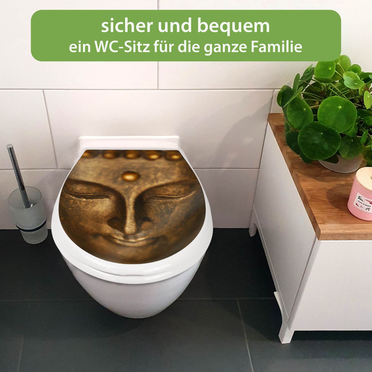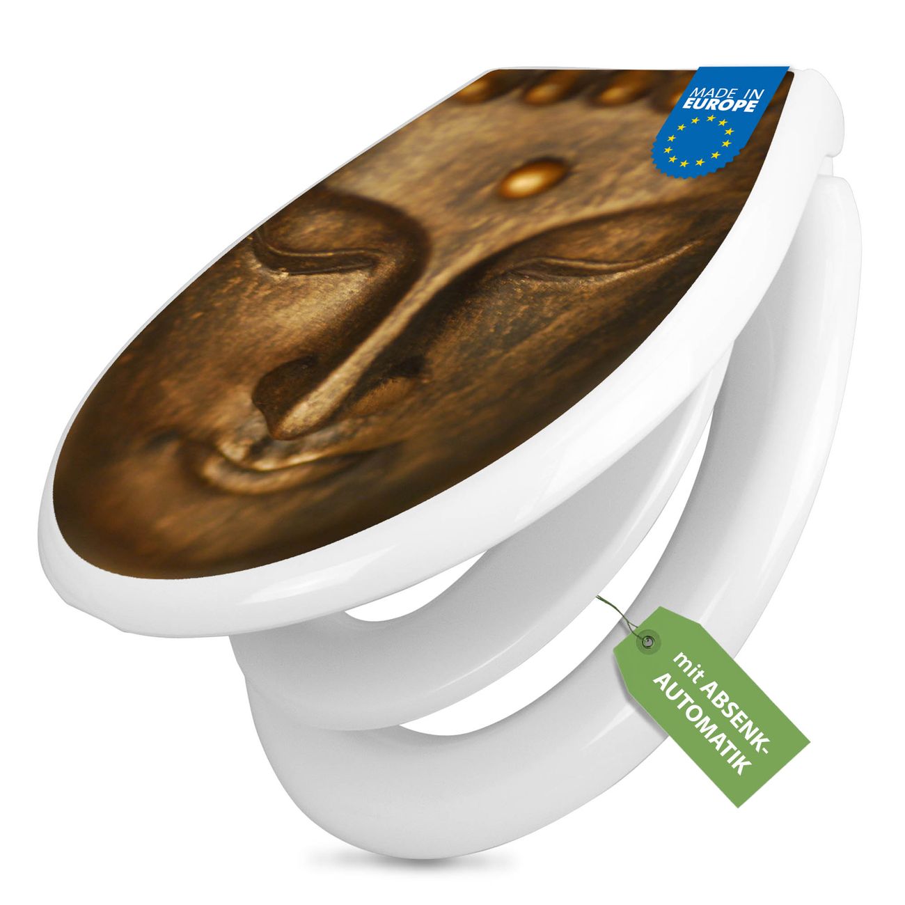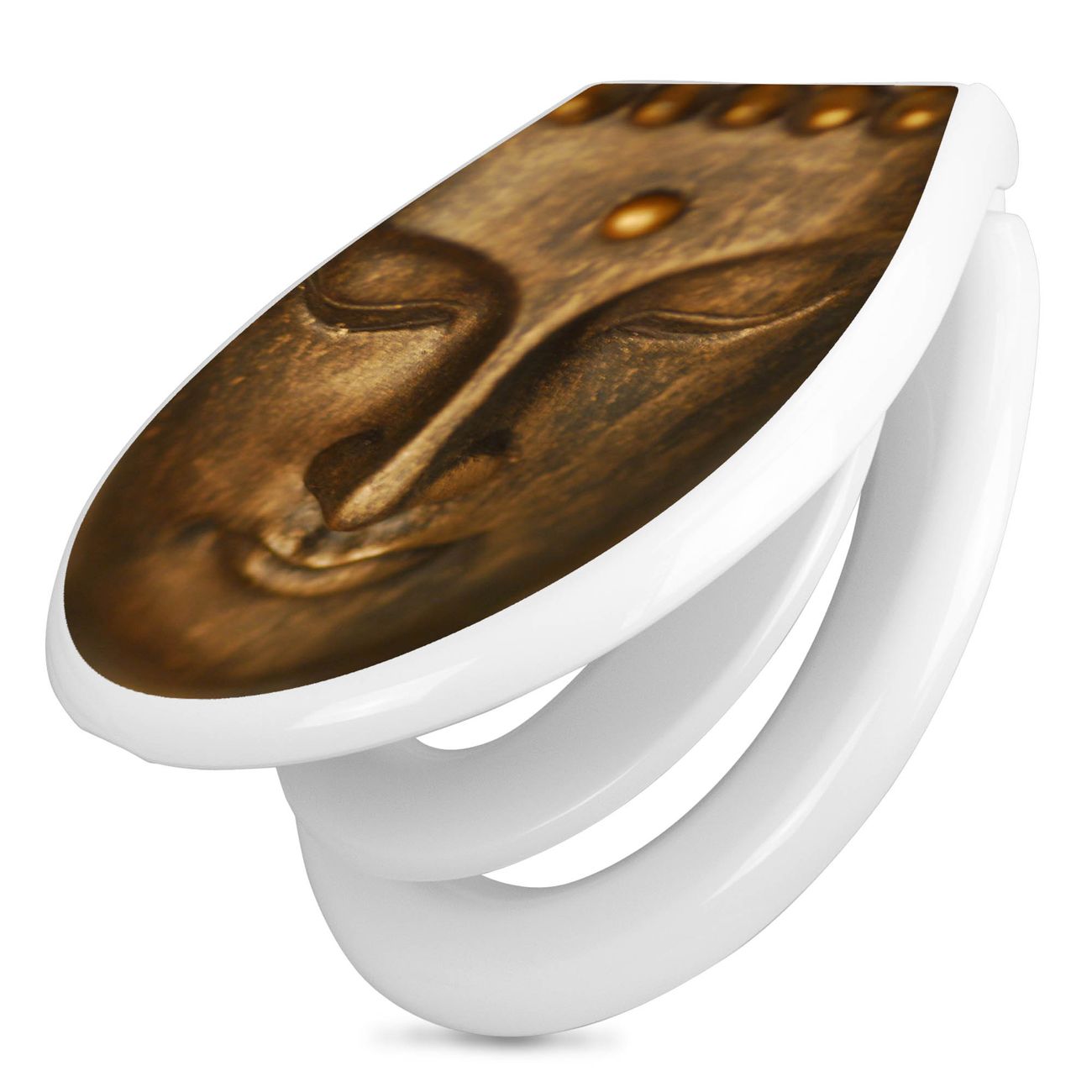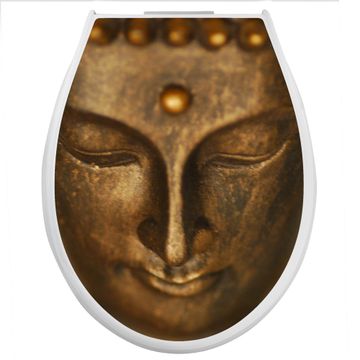 Toilettendeckel weiß mit Absenkautomatik Motiv Buddha Gold