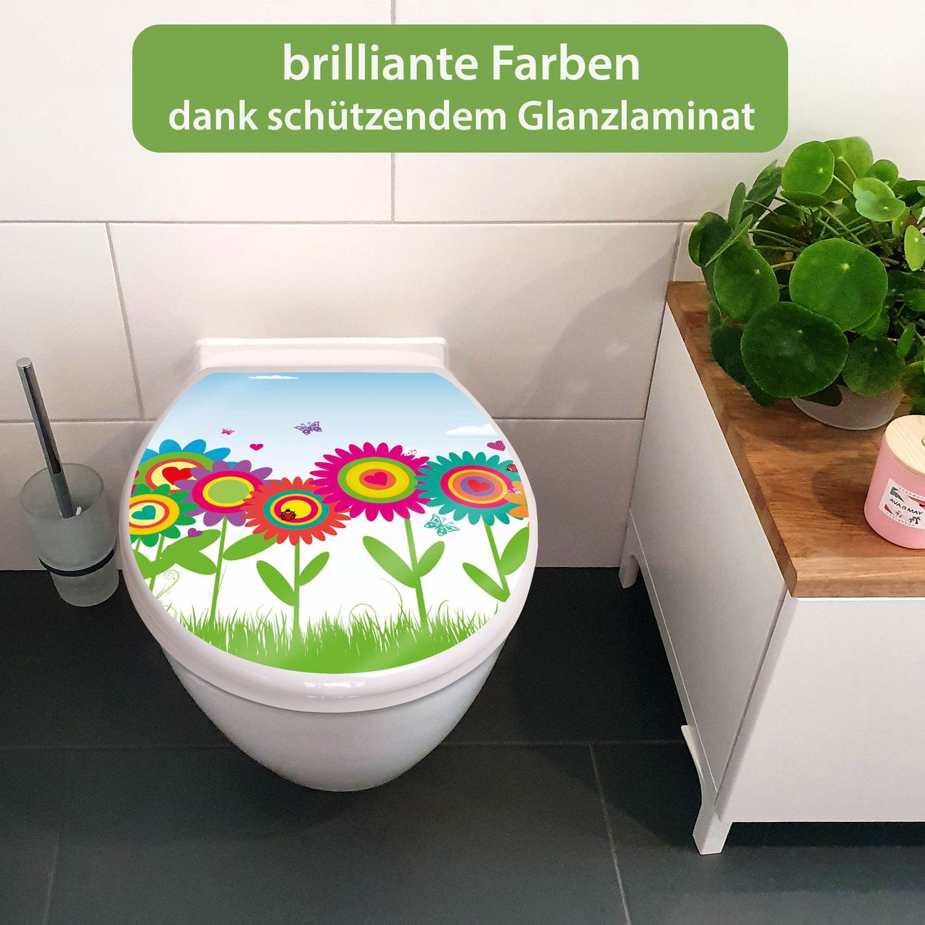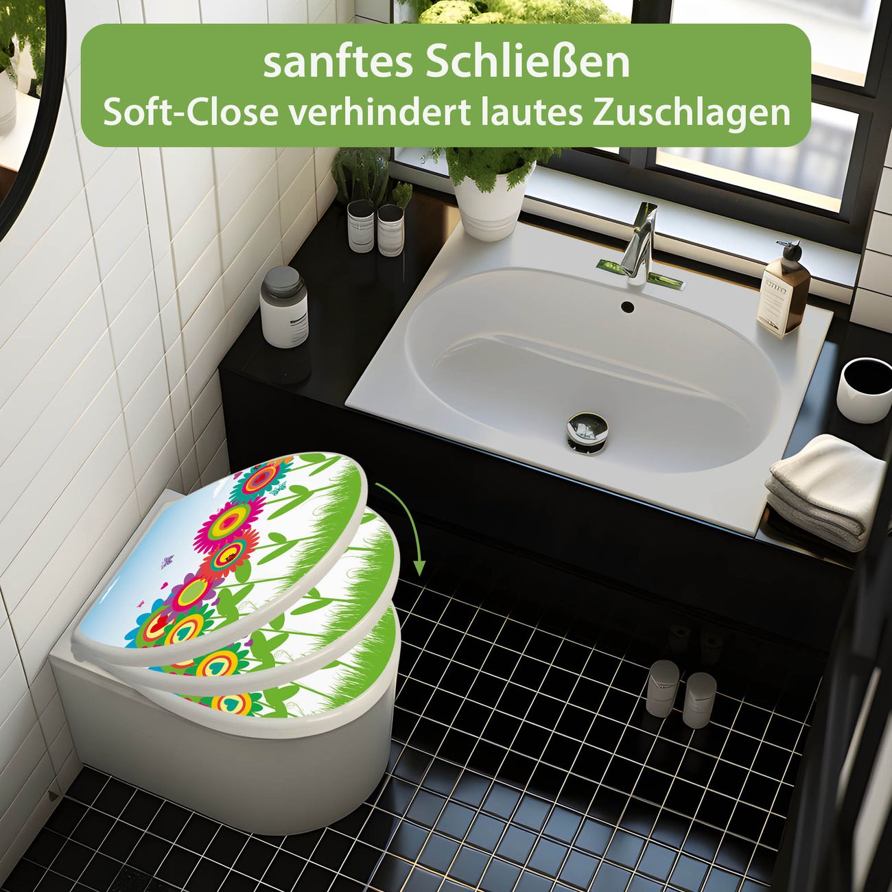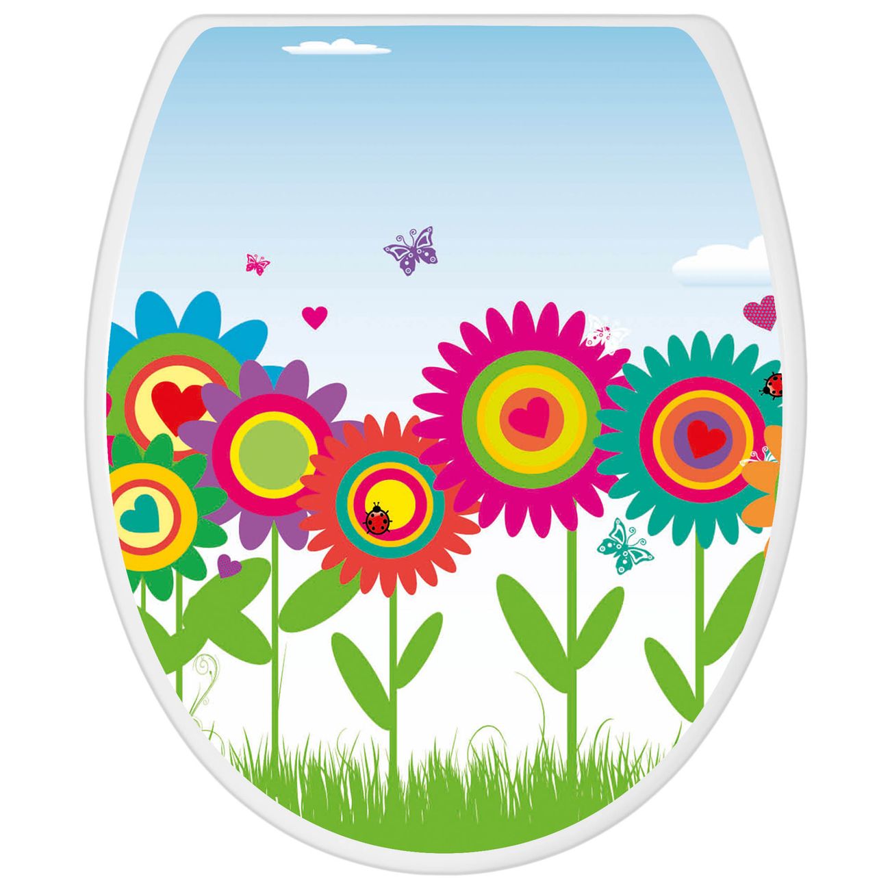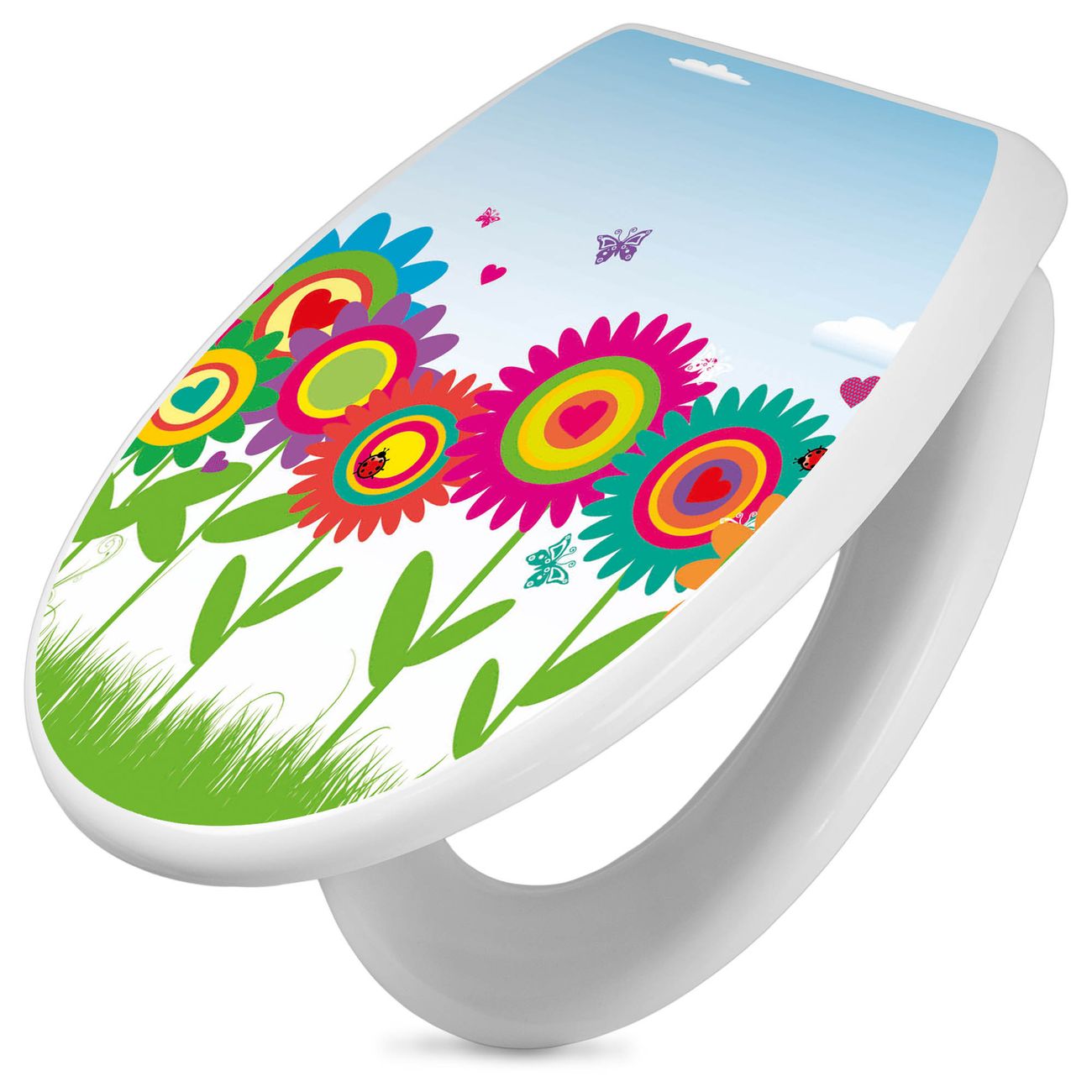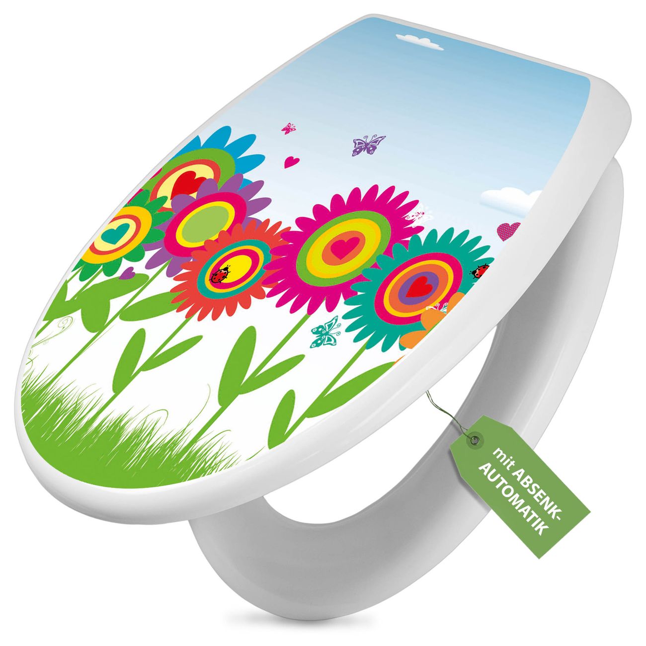 Toilettendeckel weiß mit Absenkautomatik Motiv Bunte Blumen