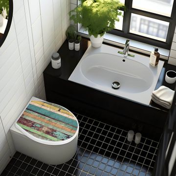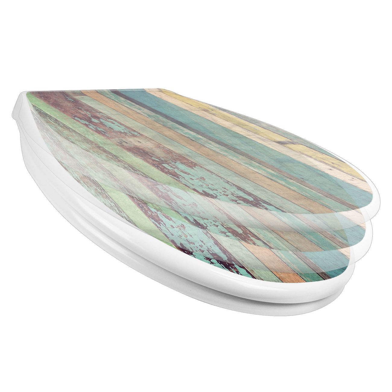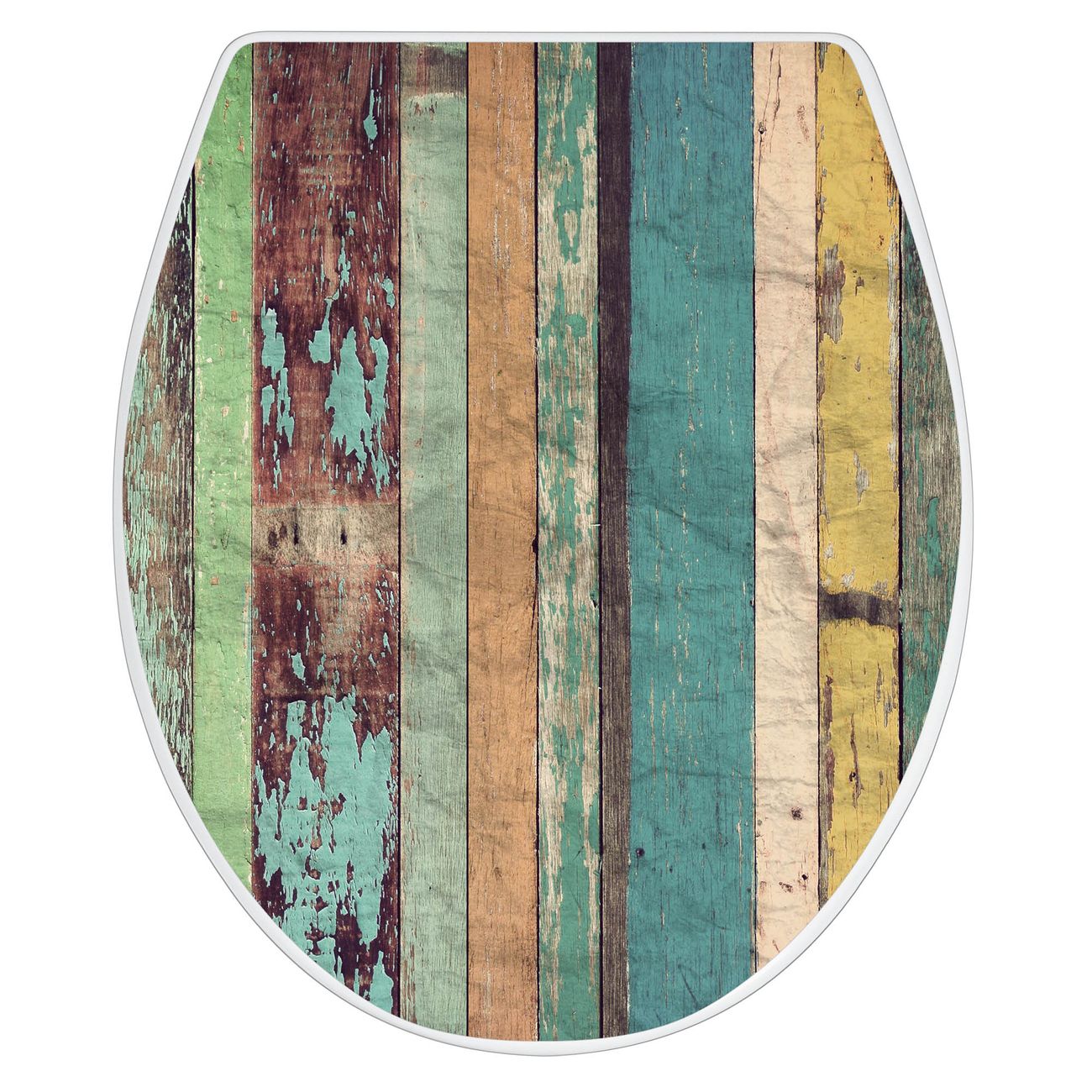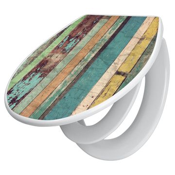 Toilettendeckel weiß mit Absenkautomatik Motiv Bunte Bretterwand