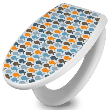 Toilettendeckel weiß mit Absenkautomatik Motiv Bunte Fische