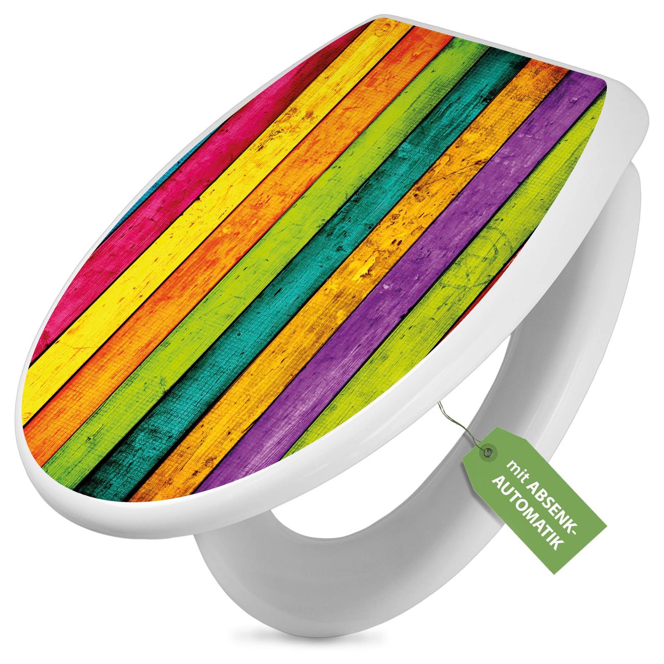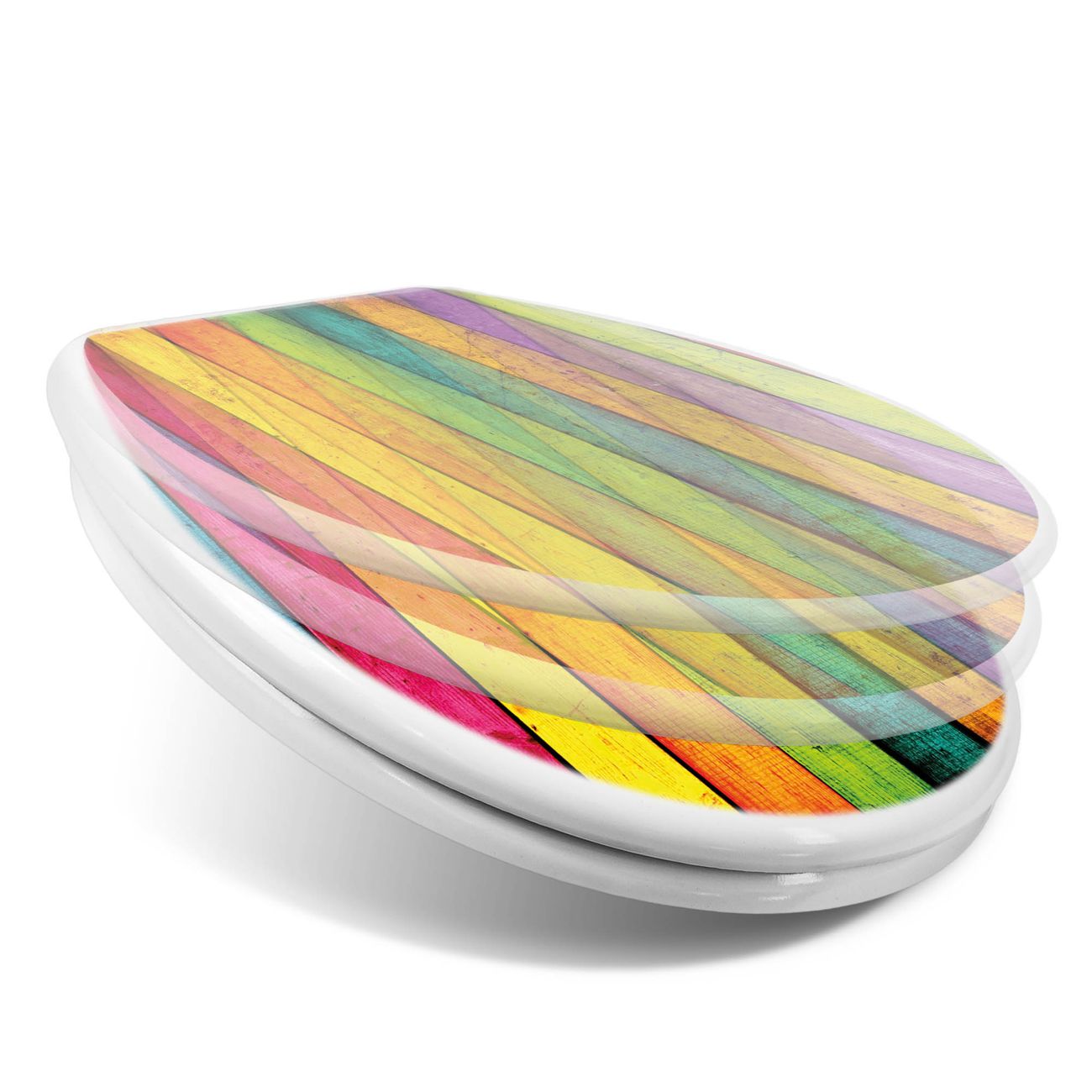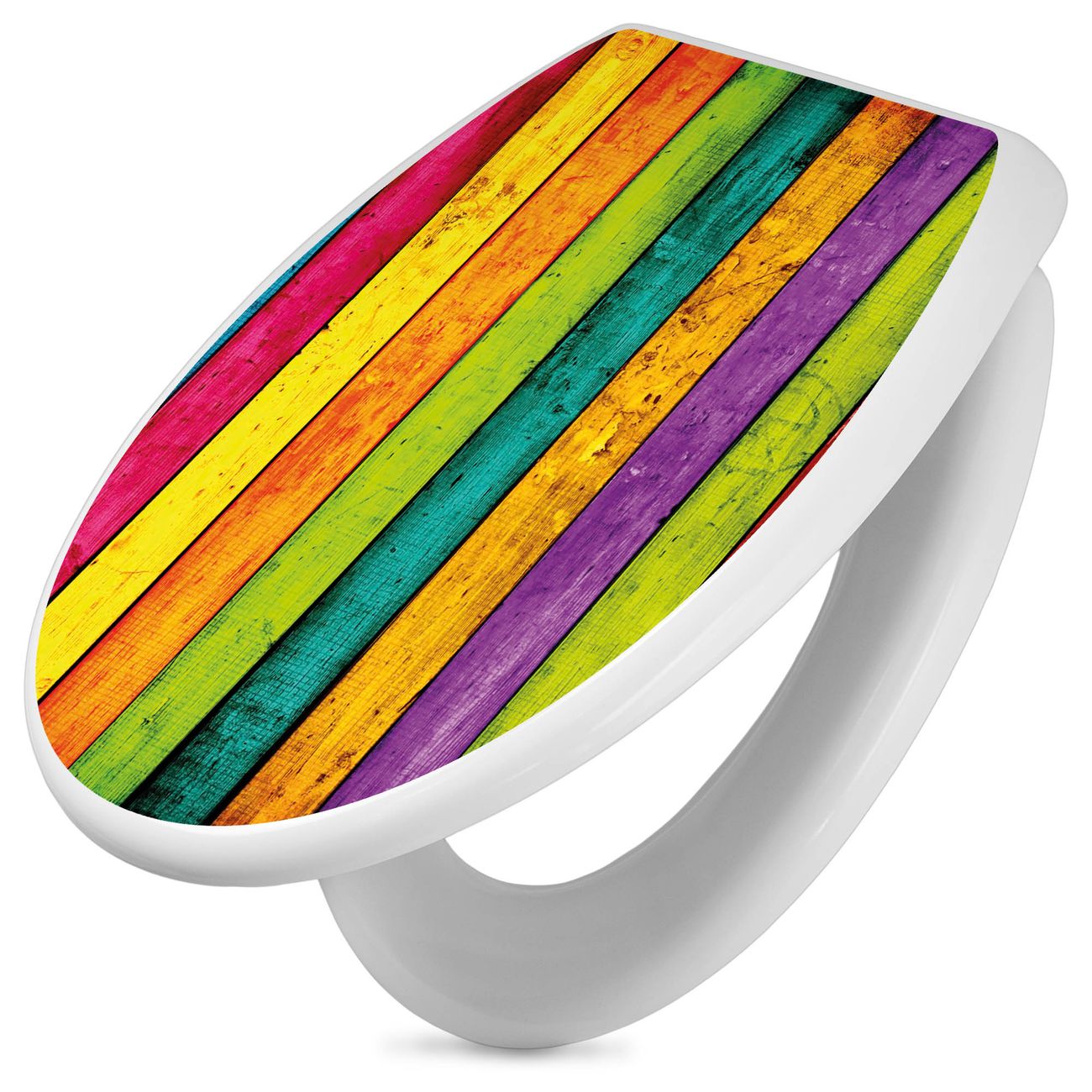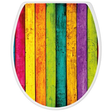 Toilettendeckel weiß mit Absenkautomatik Motiv Bunte Holzlatten