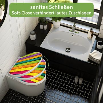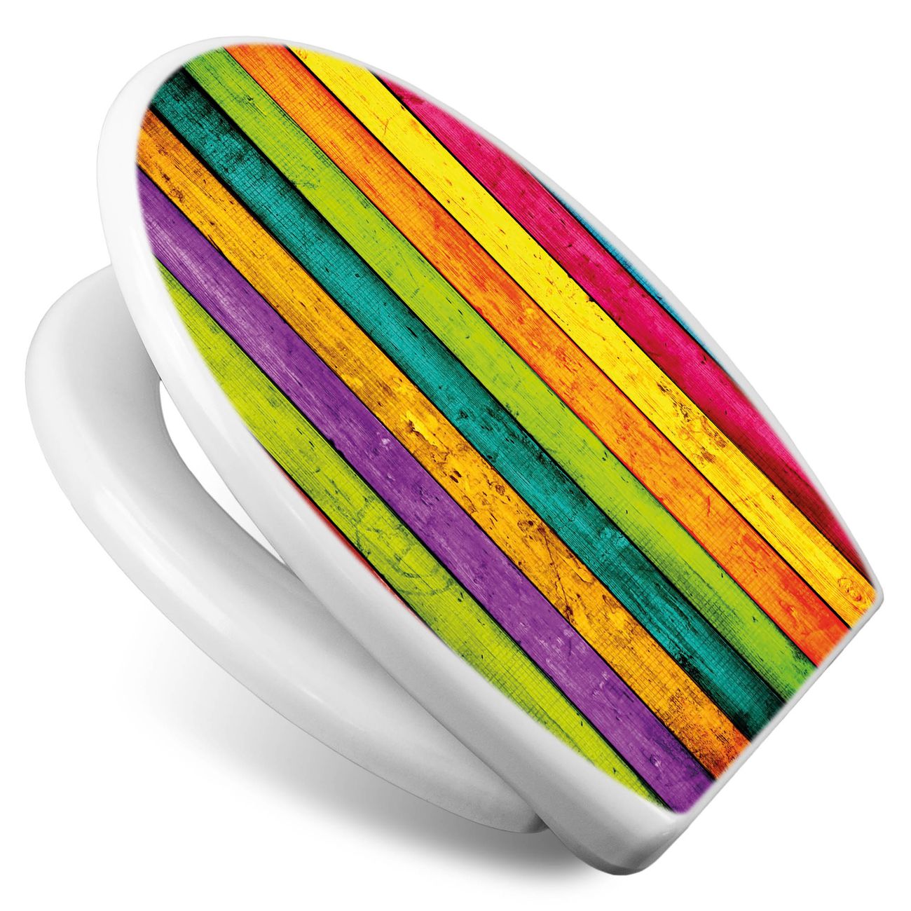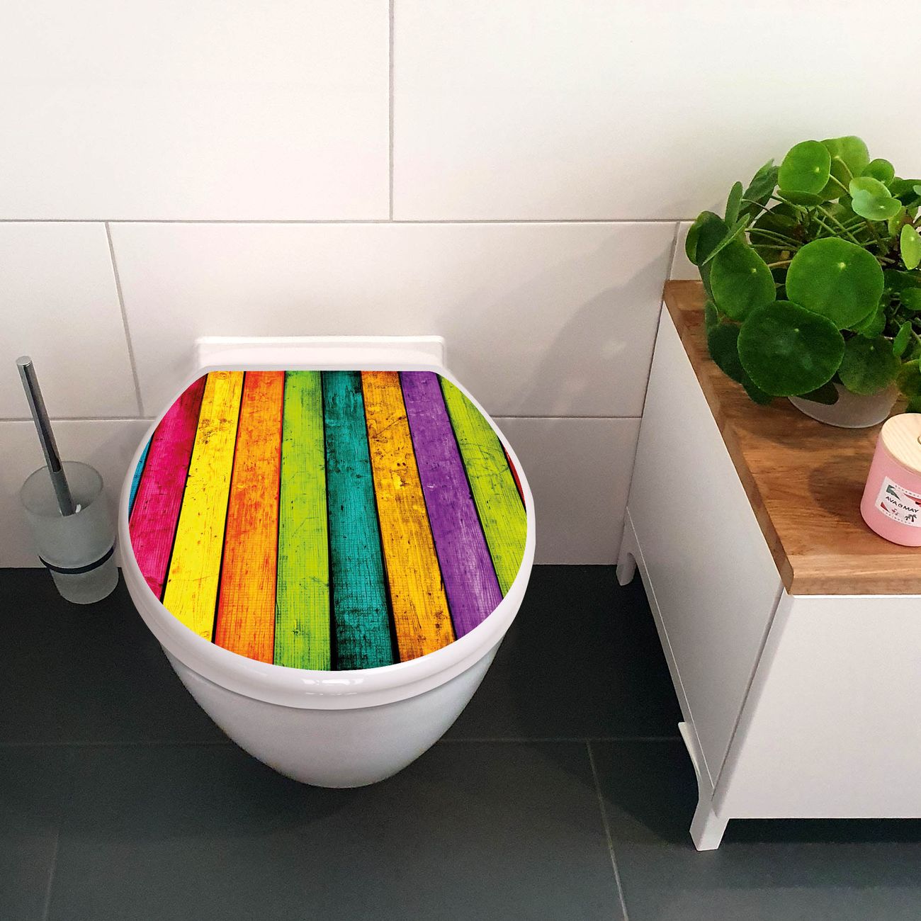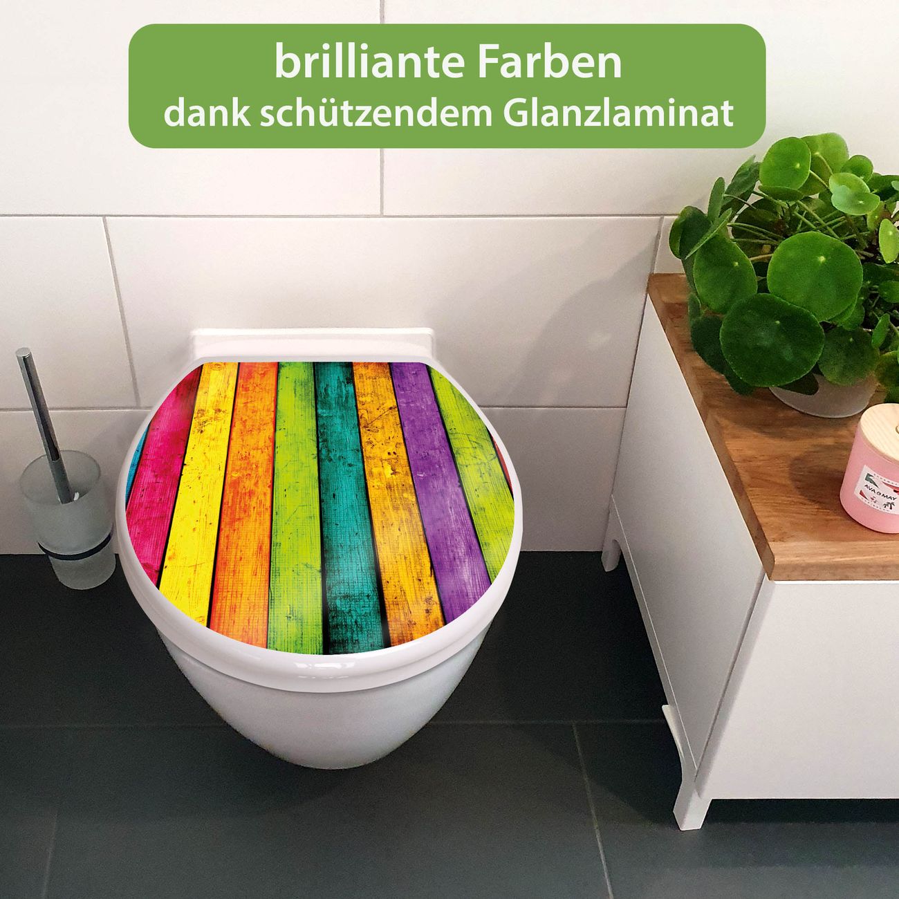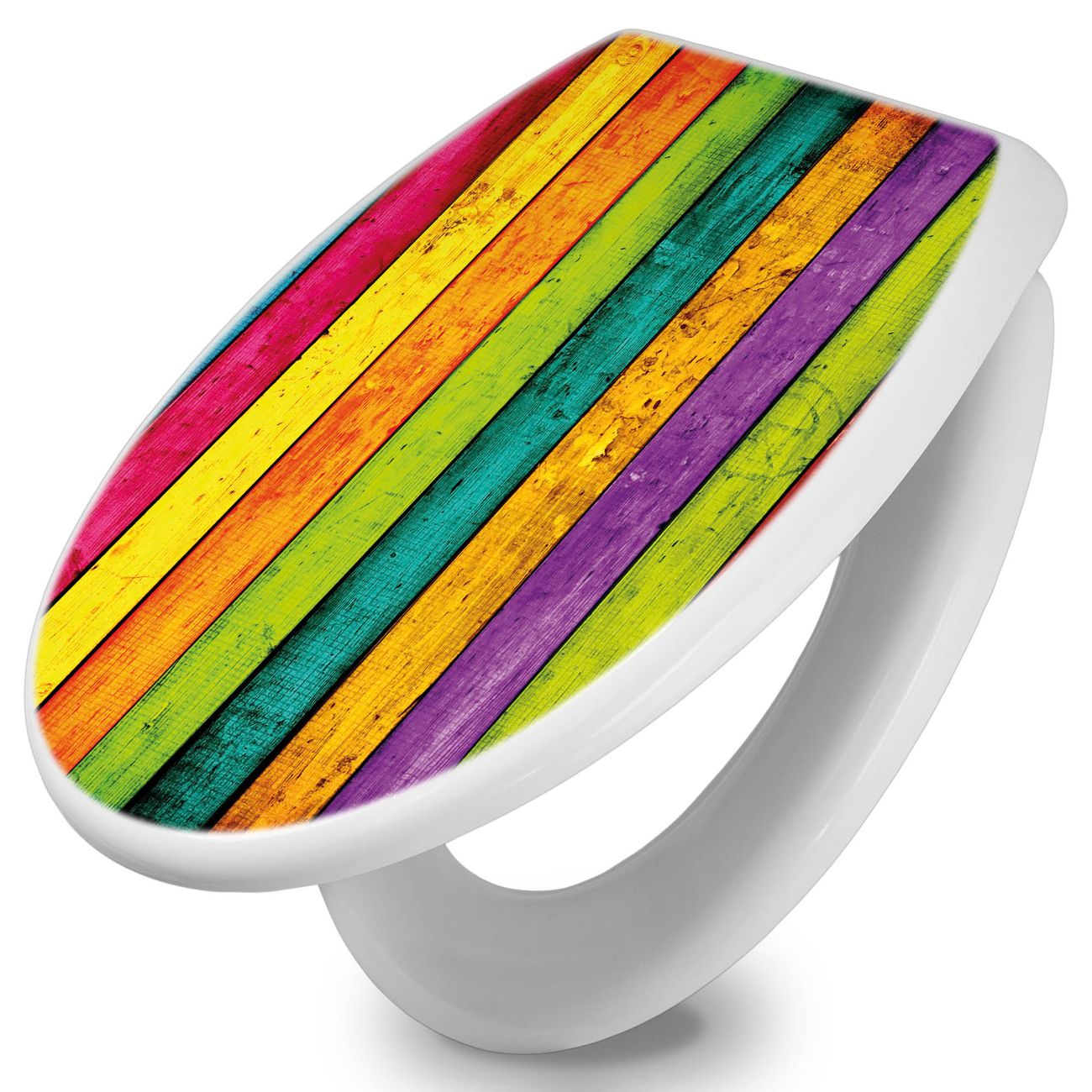 Toilettendeckel weiß mit Absenkautomatik Motiv Bunte Holzlatten