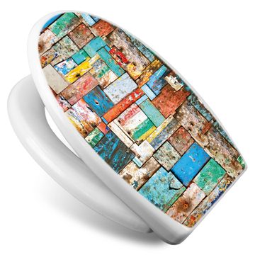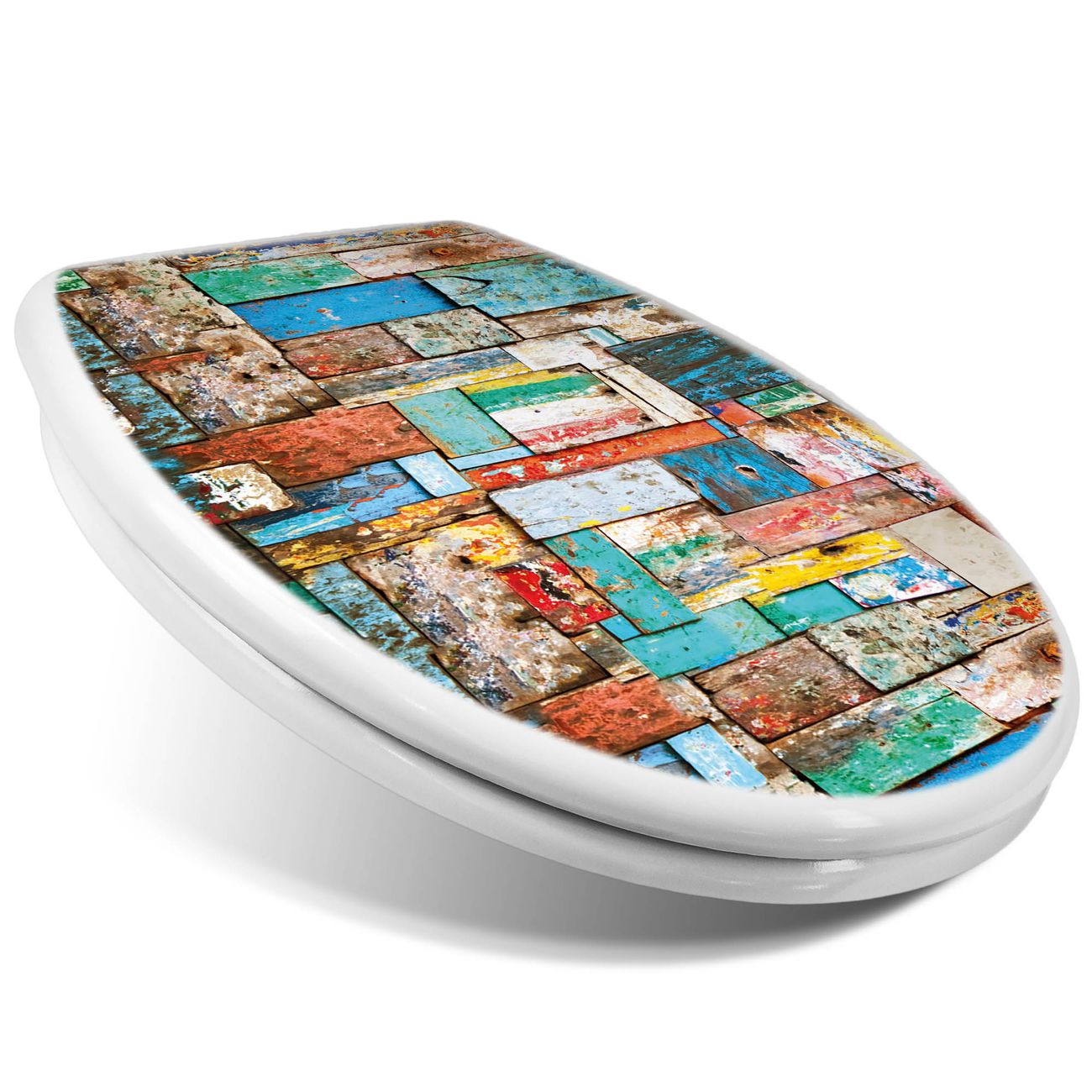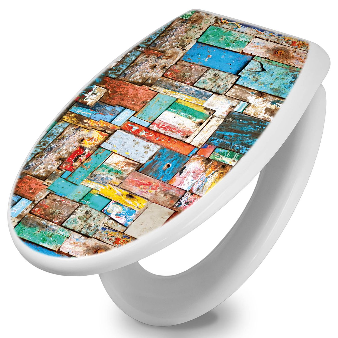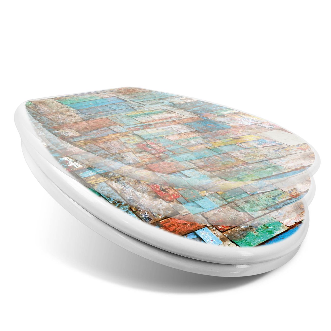 Toilettendeckel weiß mit Absenkautomatik Motiv Bunte Holzschindeln