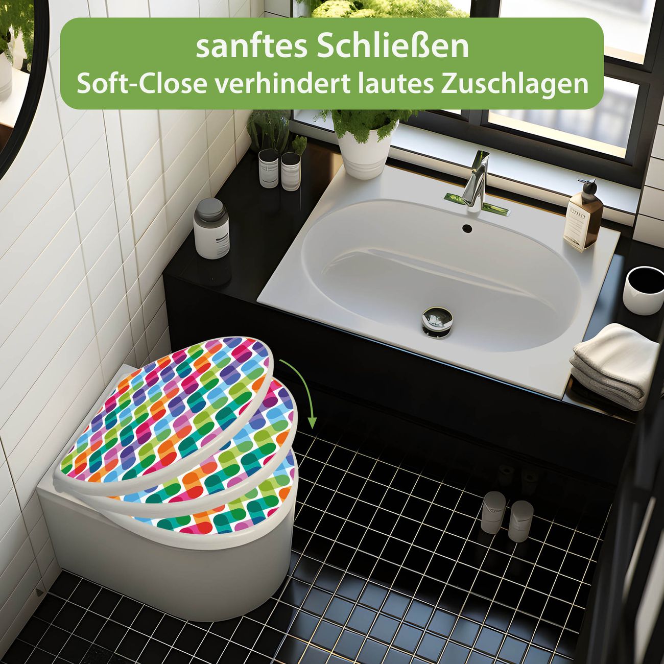 Toilettendeckel weiß mit Absenkautomatik Motiv Bunte Ketten
