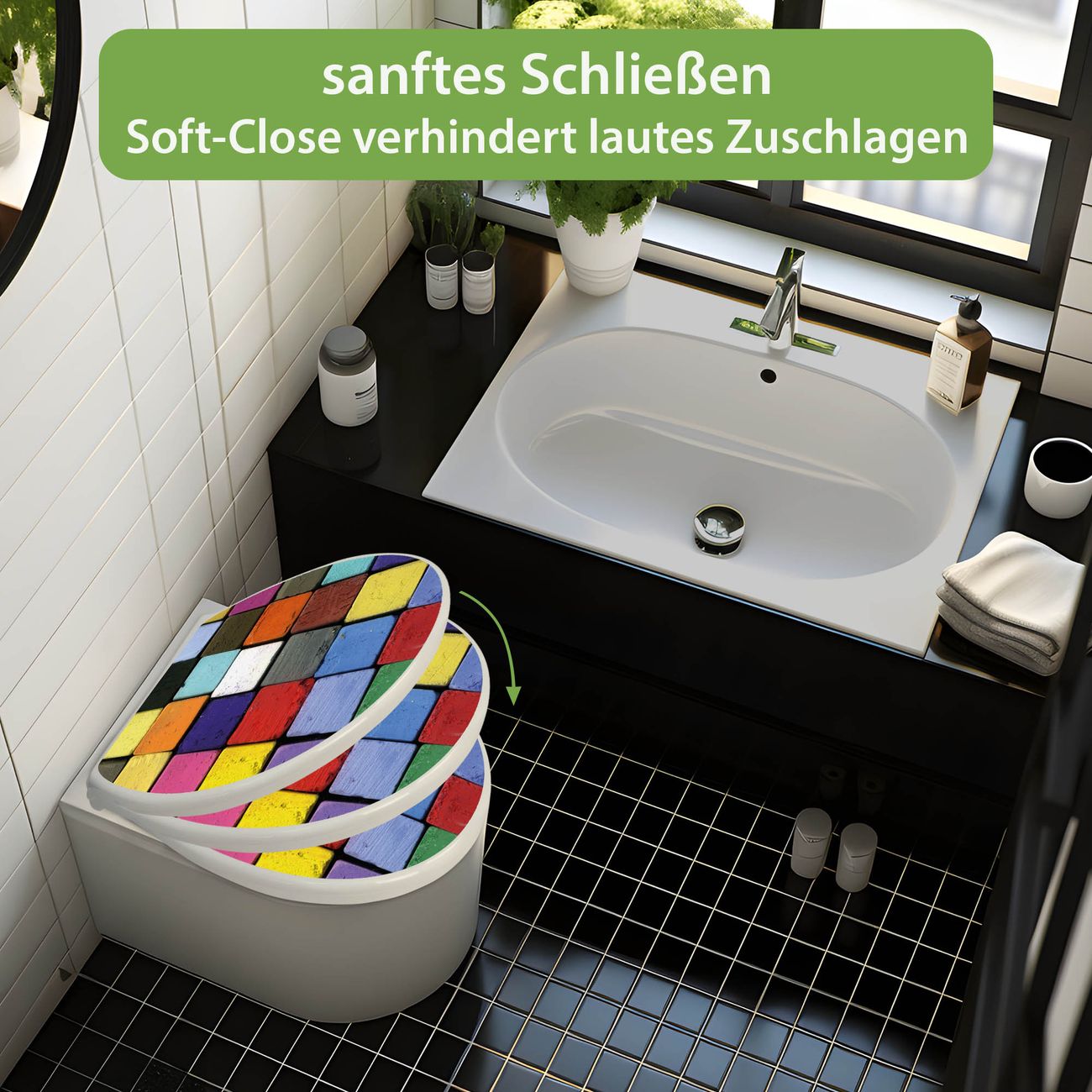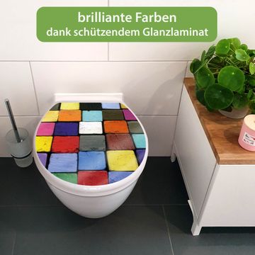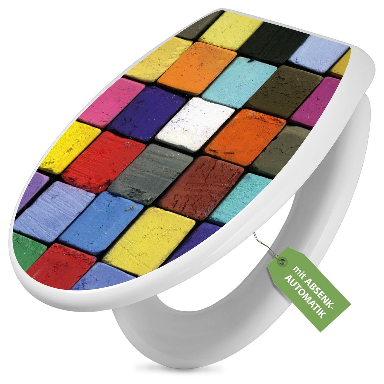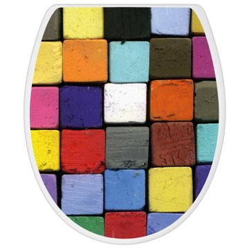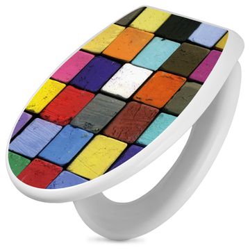 Toilettendeckel weiß mit Absenkautomatik Motiv Bunte Kreide