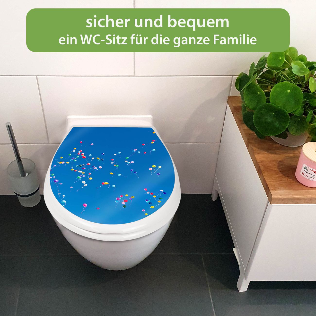 Toilettendeckel weiß mit Absenkautomatik Motiv Bunte Luftballons