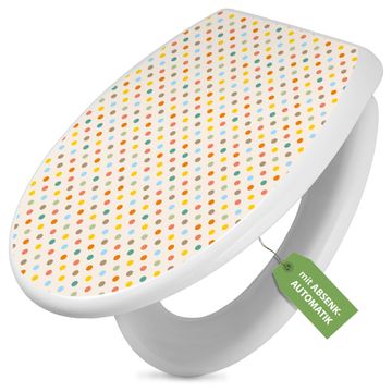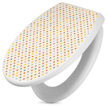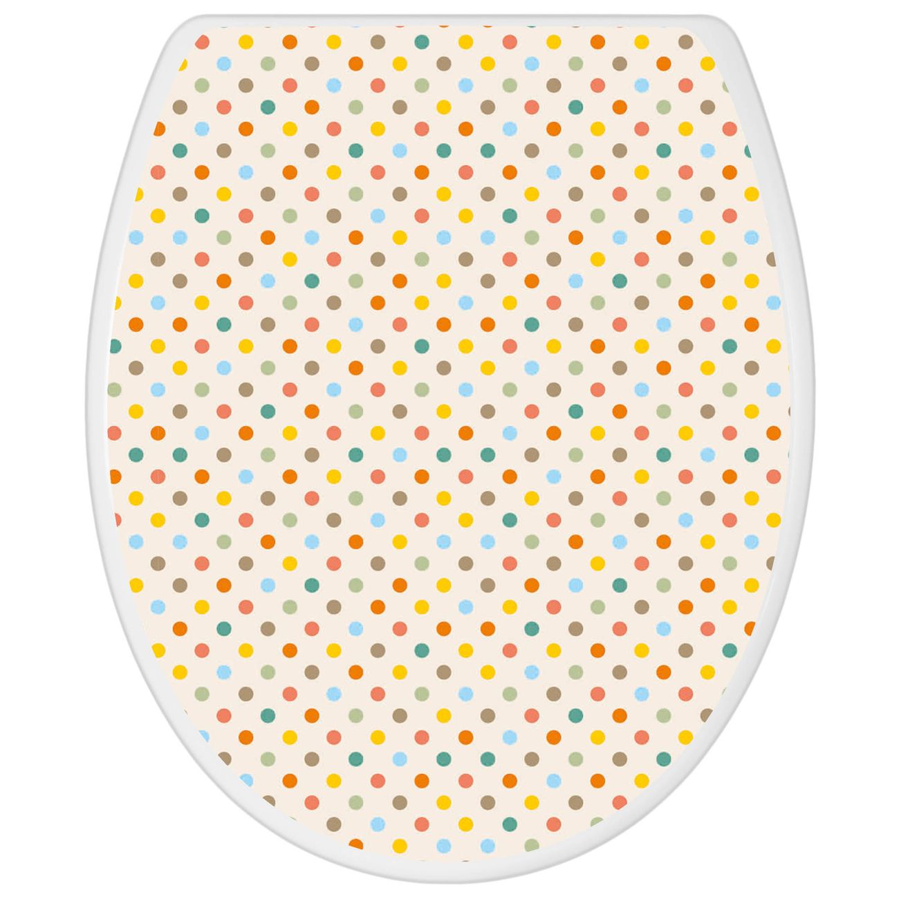 Toilettendeckel weiß mit Absenkautomatik Motiv Bunte Punkte