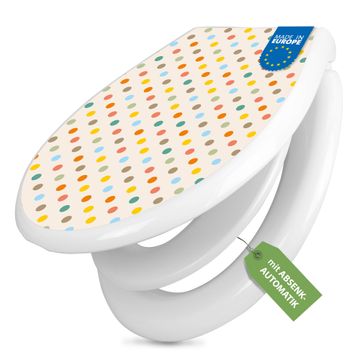 Toilettendeckel weiß mit Absenkautomatik Motiv Bunte Punkte