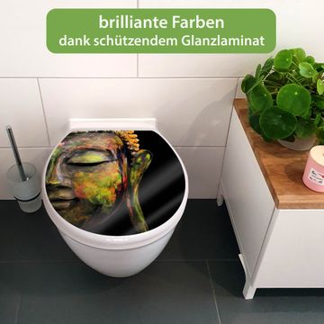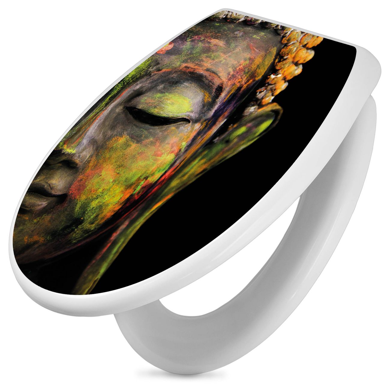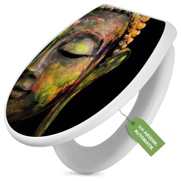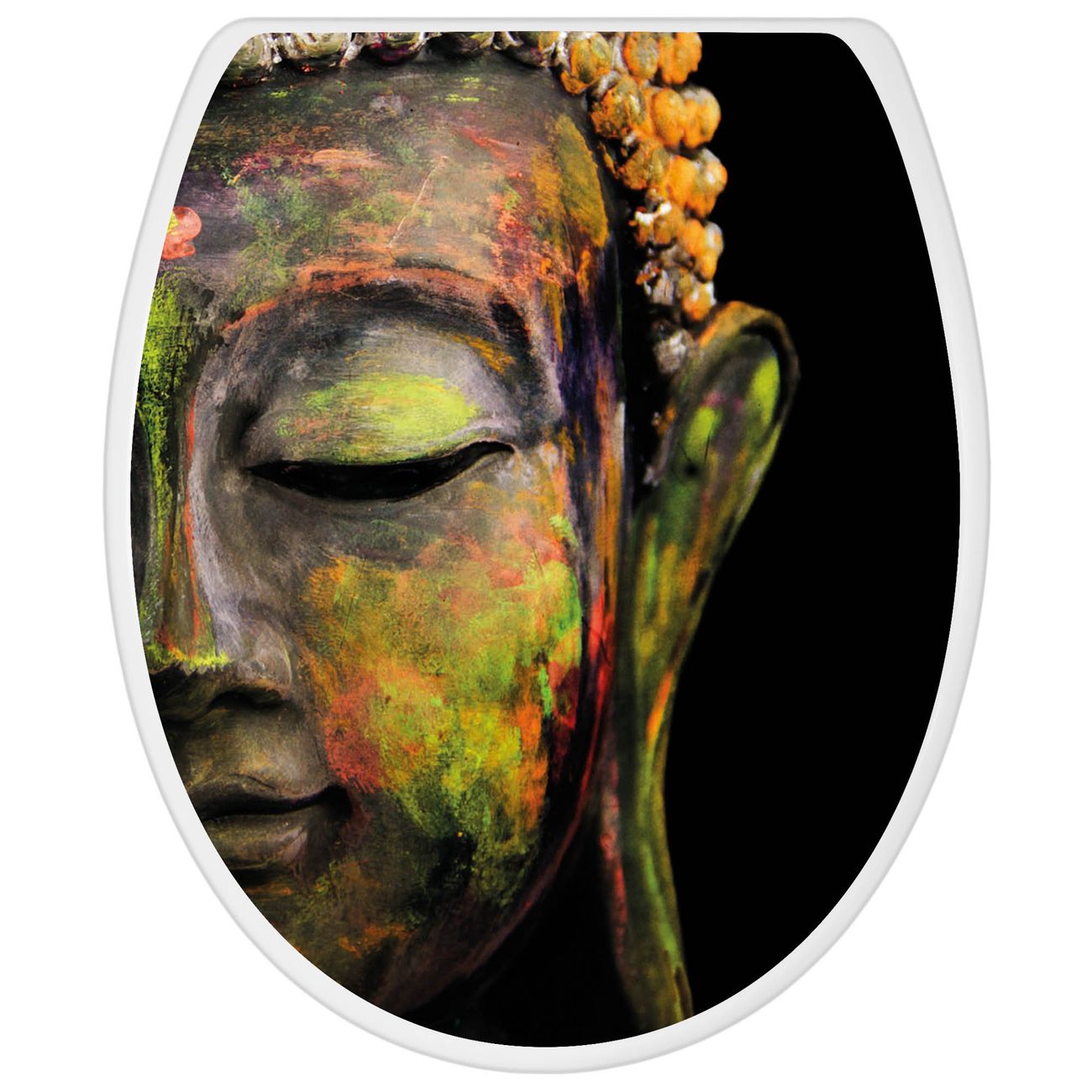 Toilettendeckel weiß mit Absenkautomatik Motiv Bunter Buddha