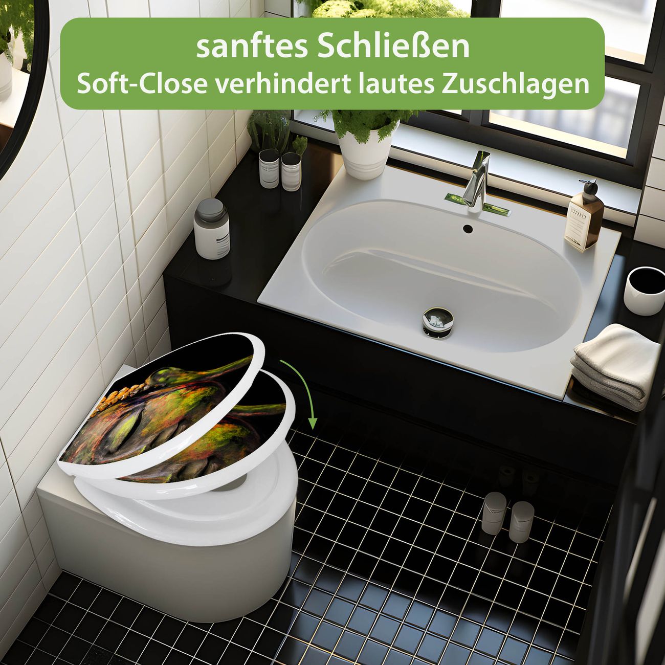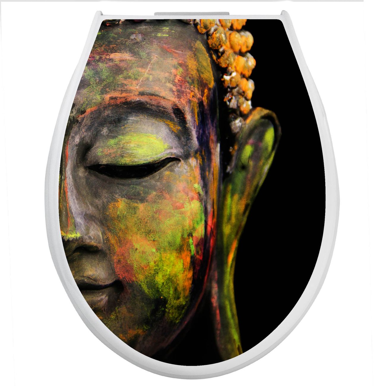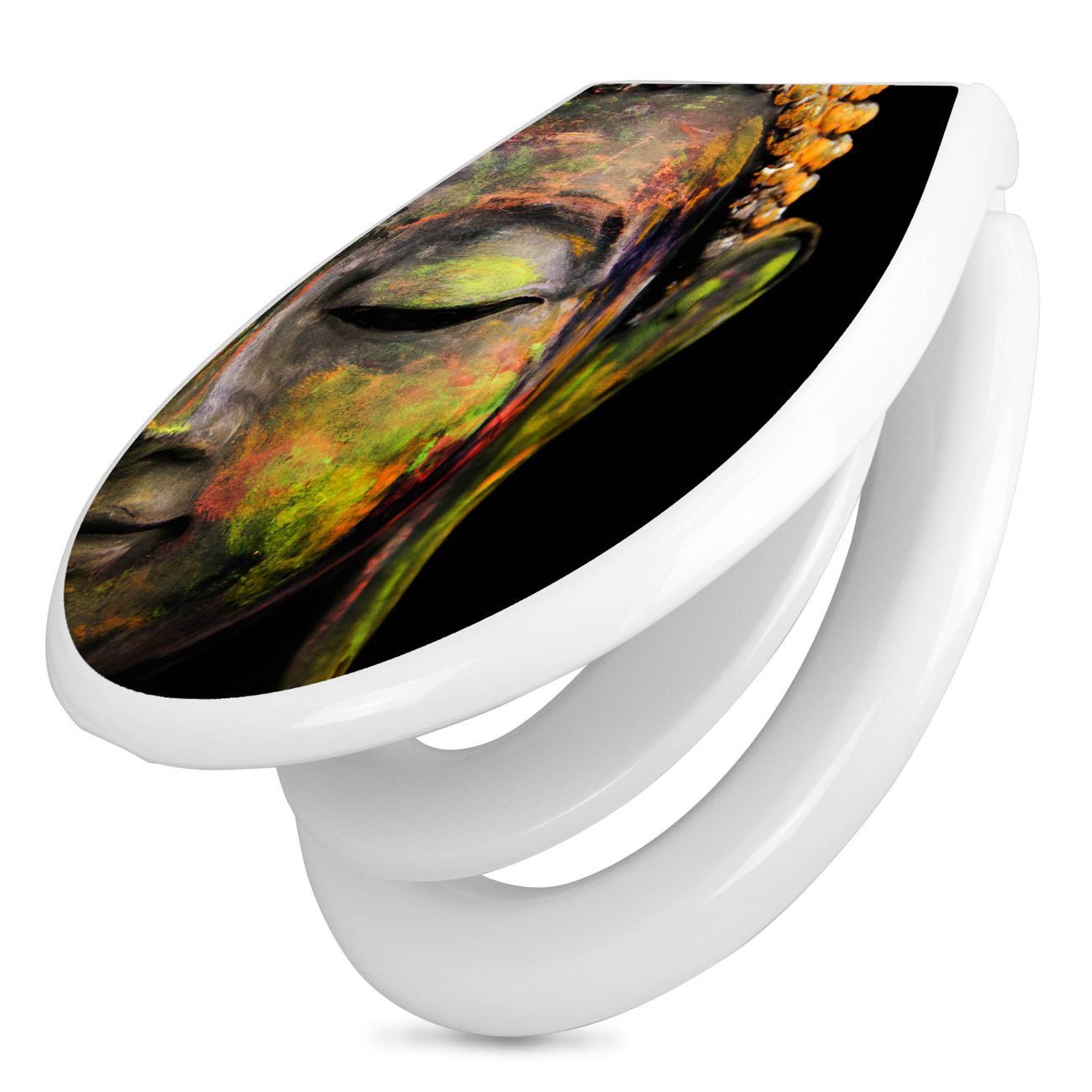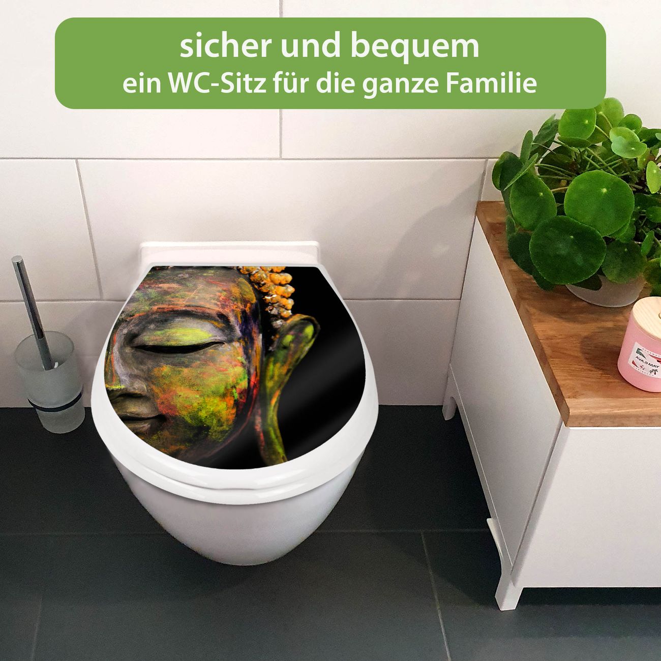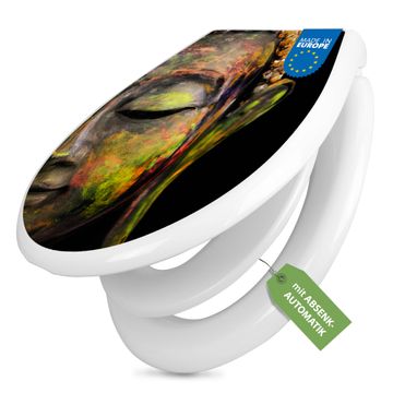 Toilettendeckel weiß mit Absenkautomatik Motiv Bunter Buddha